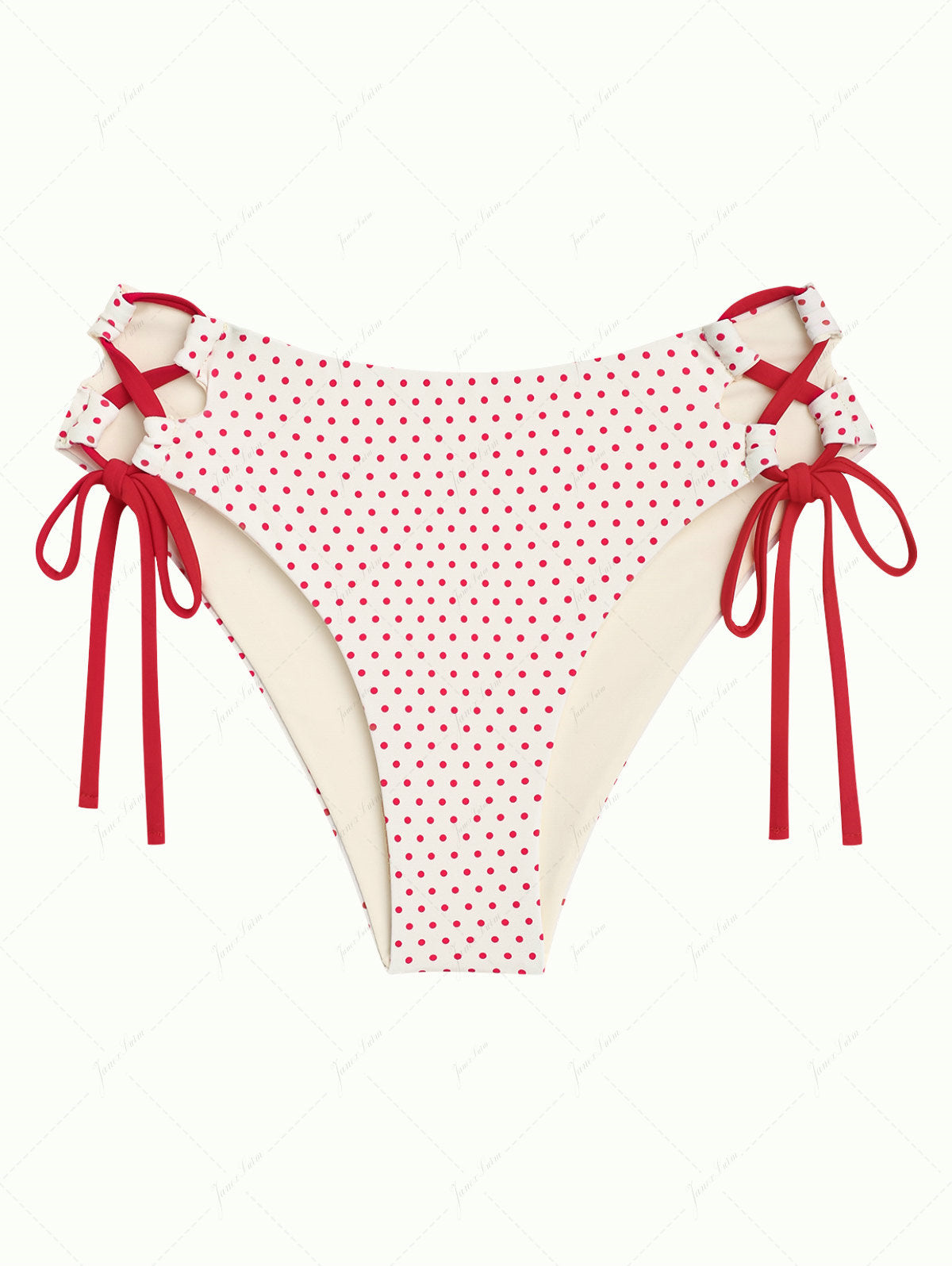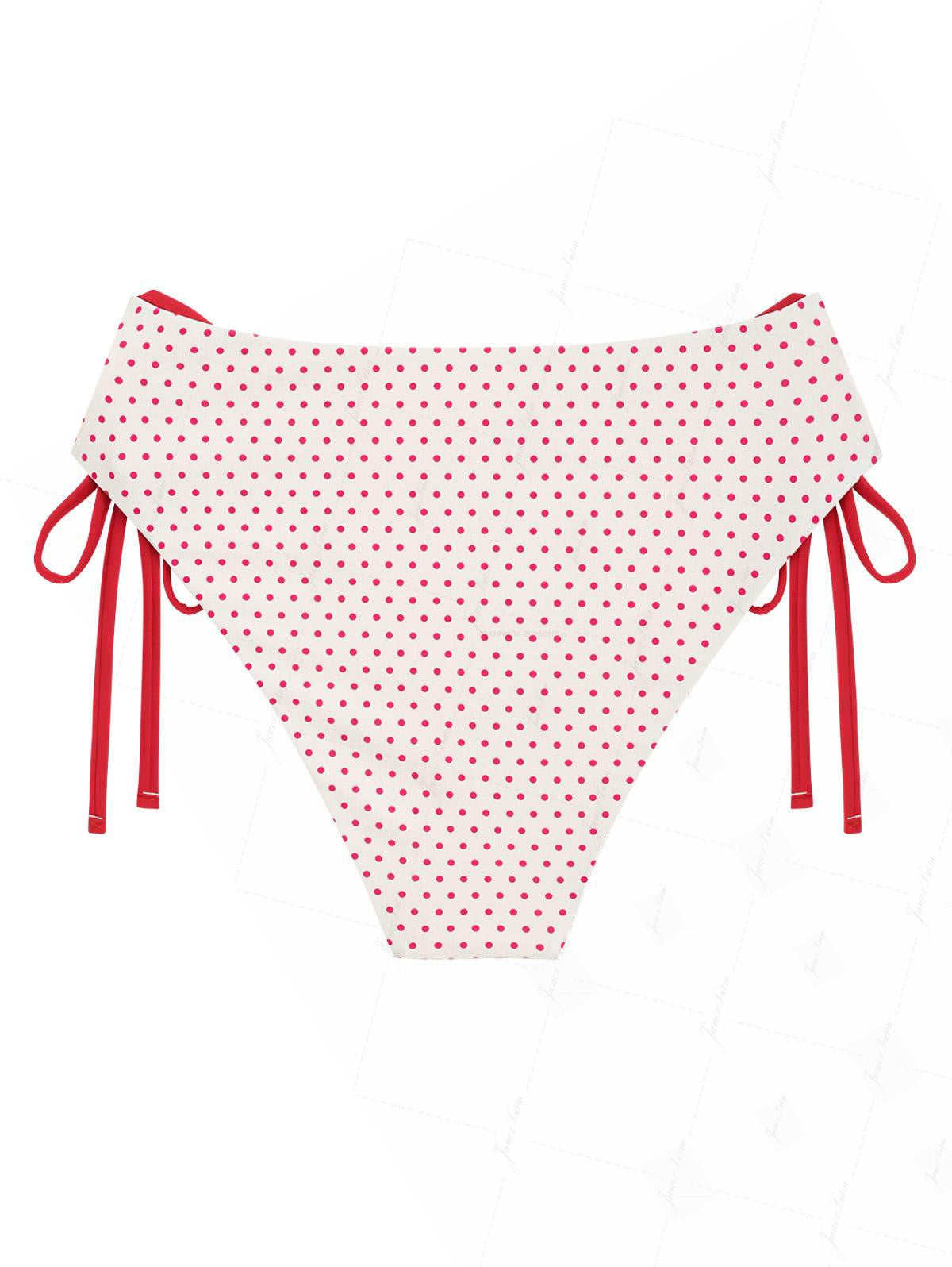 Crystal Cream Vintage Polka Dot High Rise Full Coverage Bikini Bottom