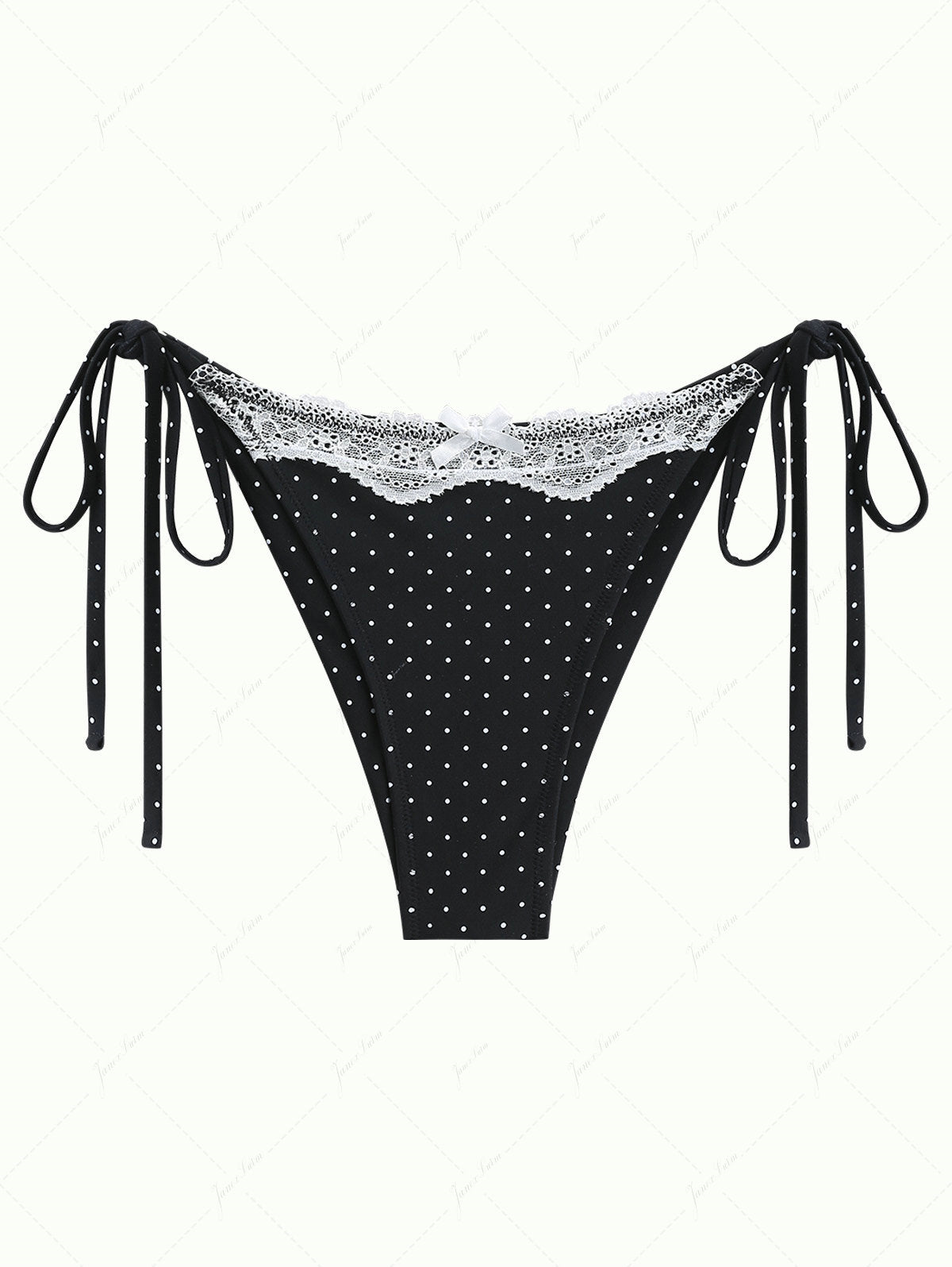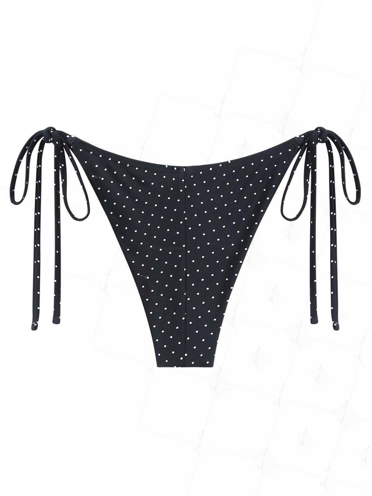 Black Polka Dot Print Lace Bowknot Tie Side Bikini Bottom