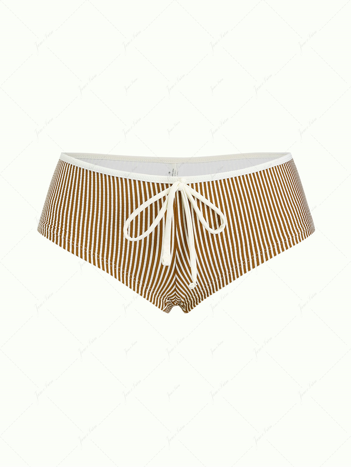 Coffee Striped Bowknot Low Rise Beach Swim Bottom Boyshorts