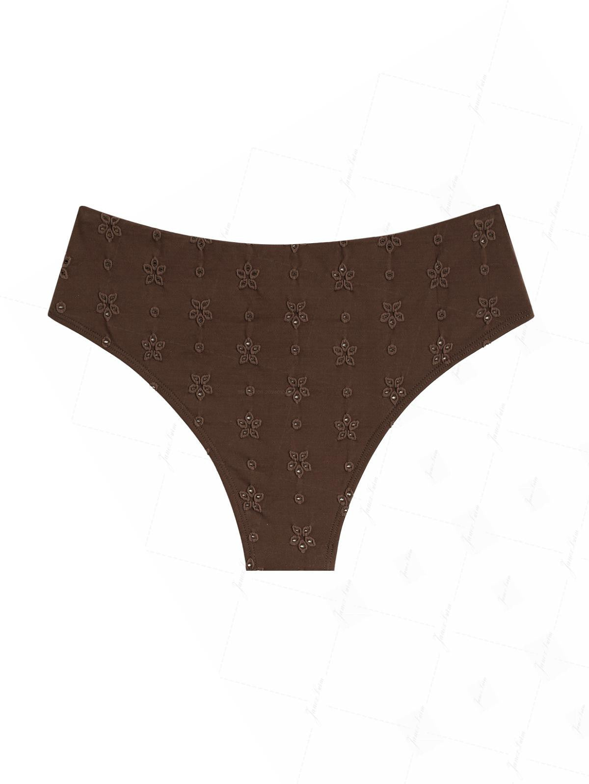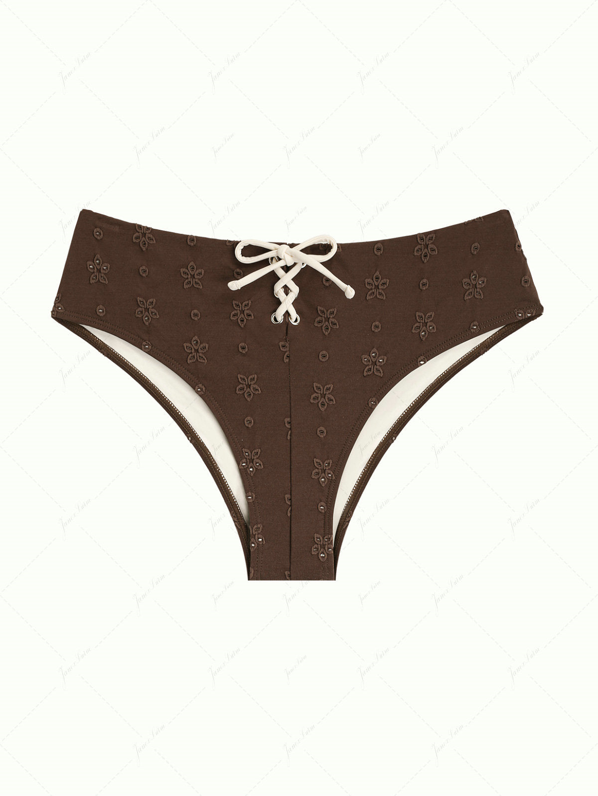 Deep Coffee Recycled Fabric Eyelet Jacquard Lace Up Bikini Bottom