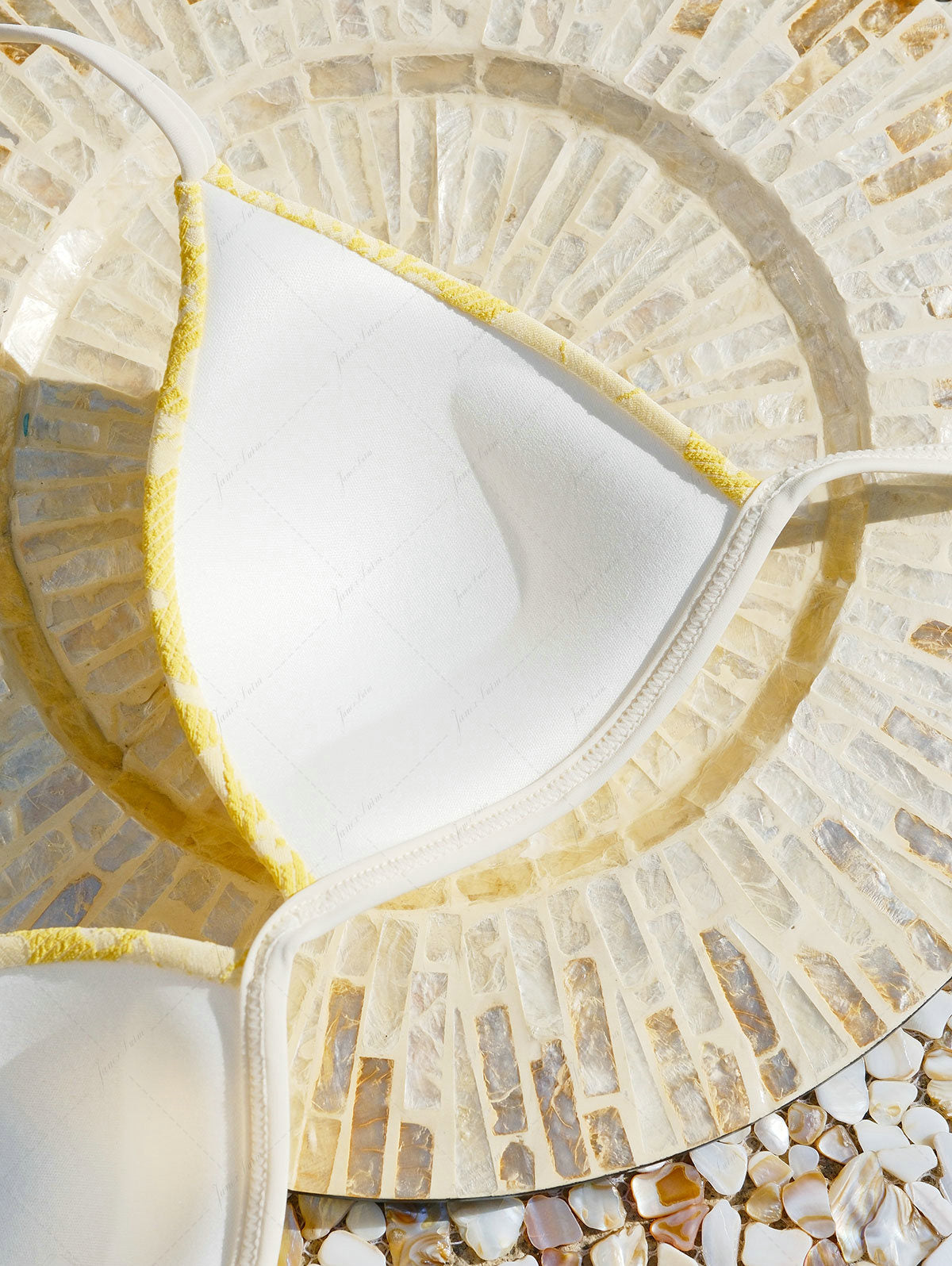 Yellow Recycled Fabric Jacquard Halter Triangle Push Up Bikini Top