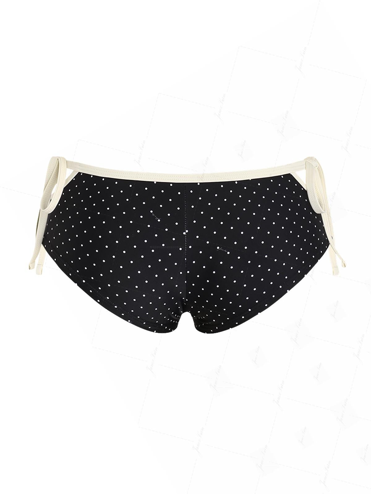 Black Polka Dot Contrast Binding Cutout Tie Bikini Bottom Cheeky Swim Boyshorts