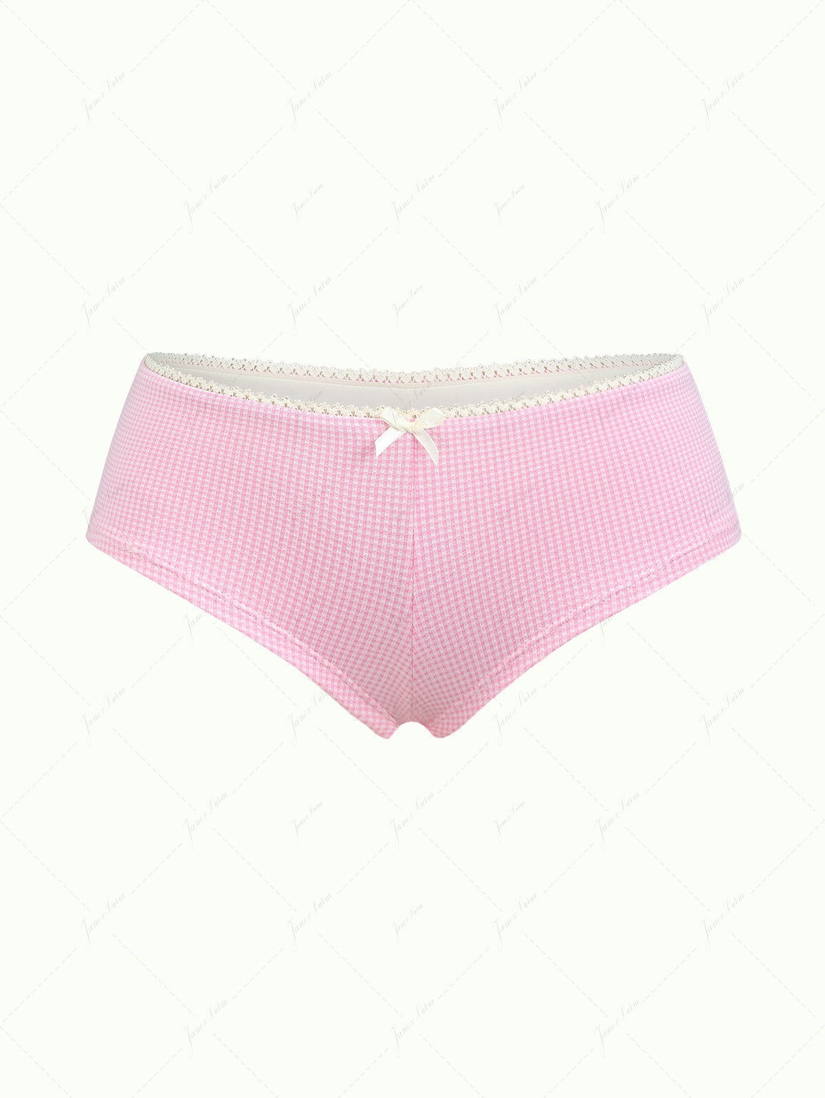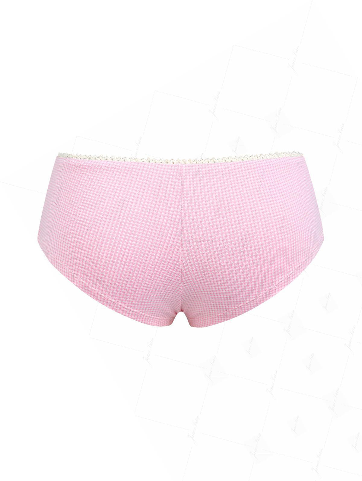 Light Pink Knitted Plaid Low Rise Bikini Bottom Cheeky Swim Boyshorts