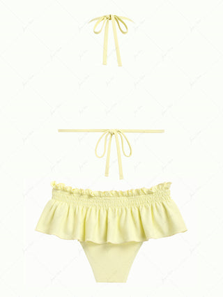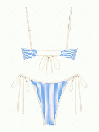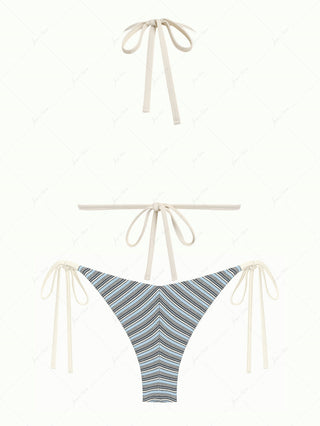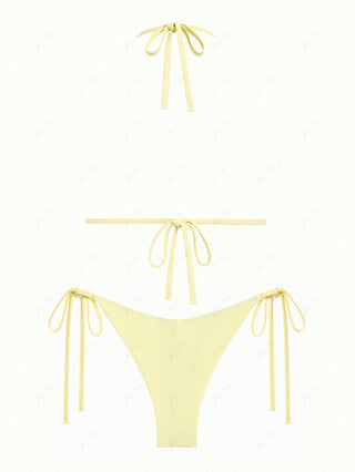 Light Yellow Textured Knit Fabric Triangle Top & Cheeky Brazilian Bottom Bikini Set