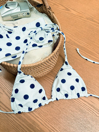 Deep Blue Denim Lace Bowknot Halter Triangle Bikini Top & Low Rise Cheeky Boyshorts Set