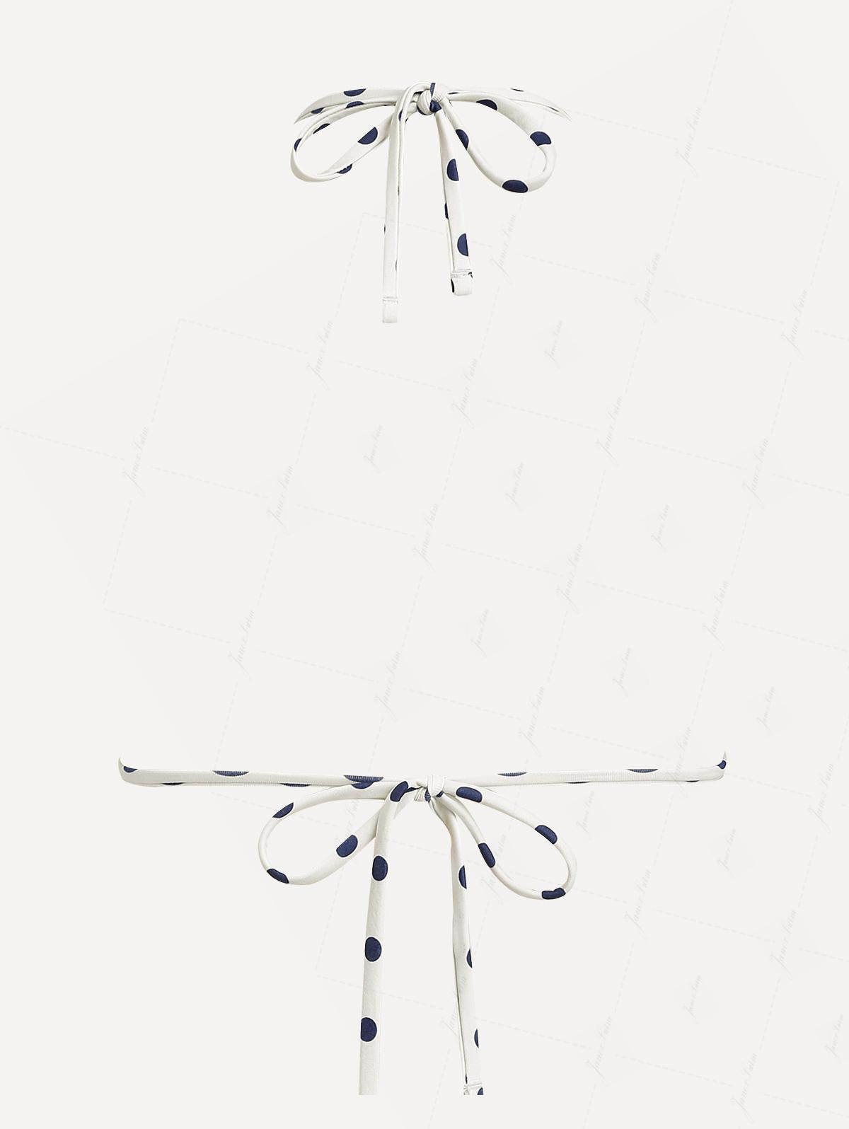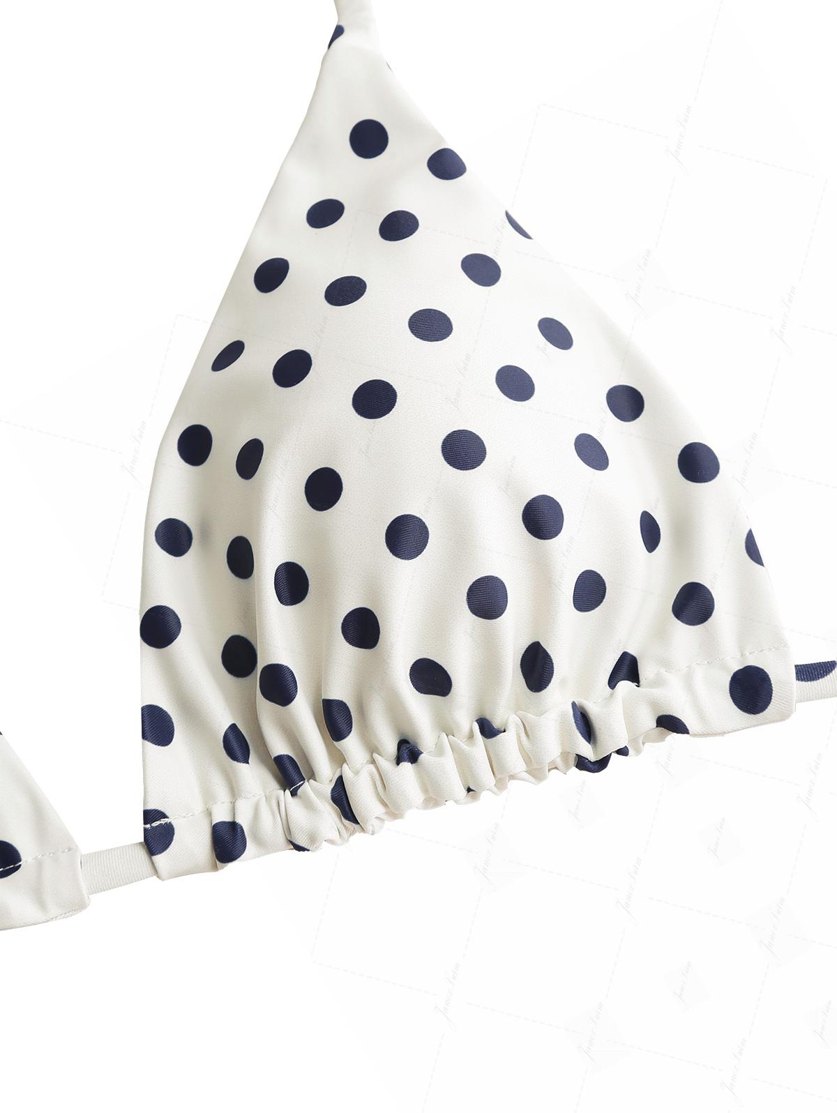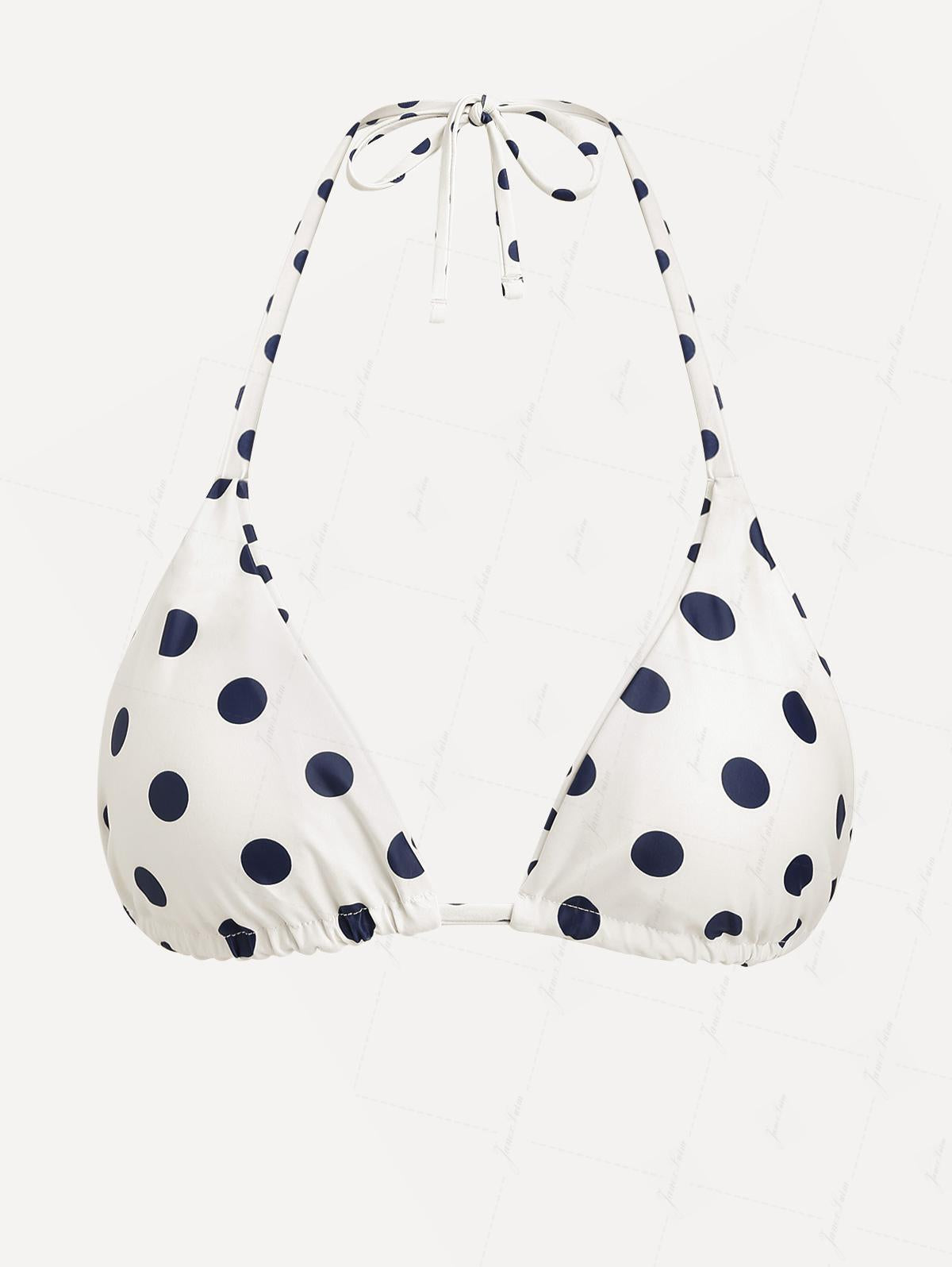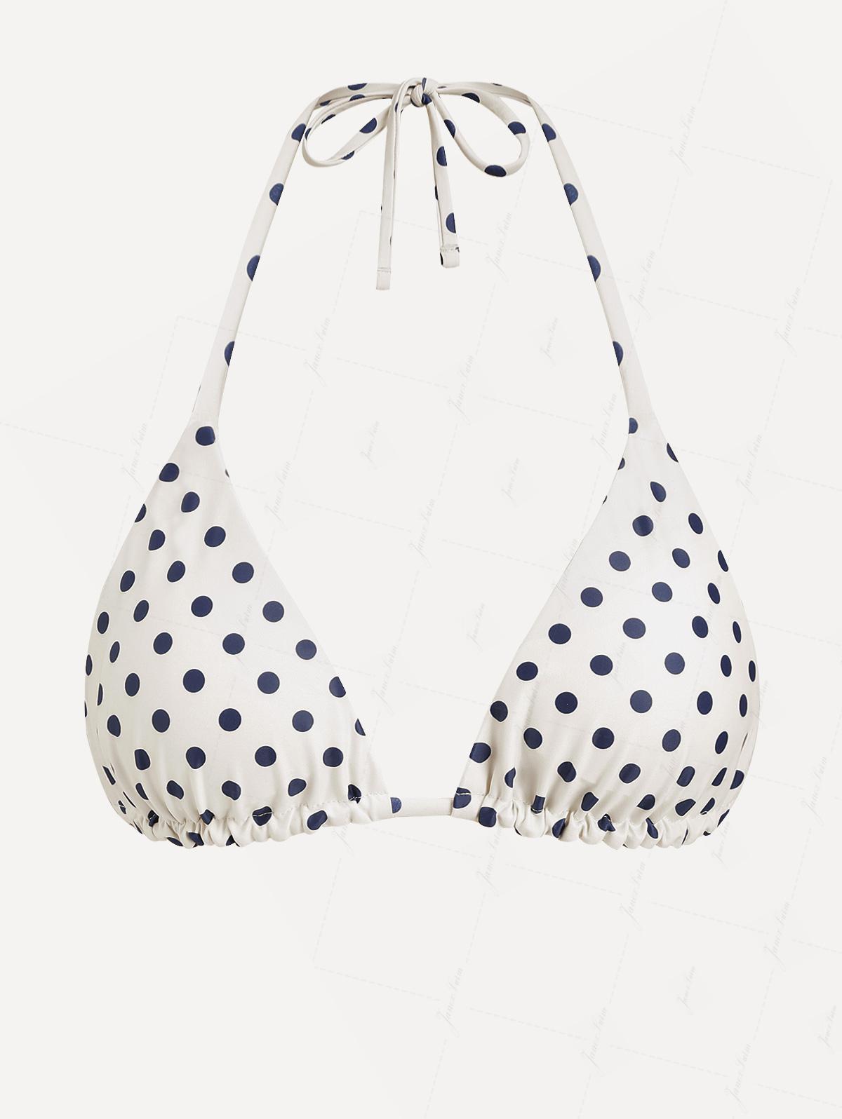 Crystal Cream Vintage Polka Dot Reversible Halter Triangle Bikini Top