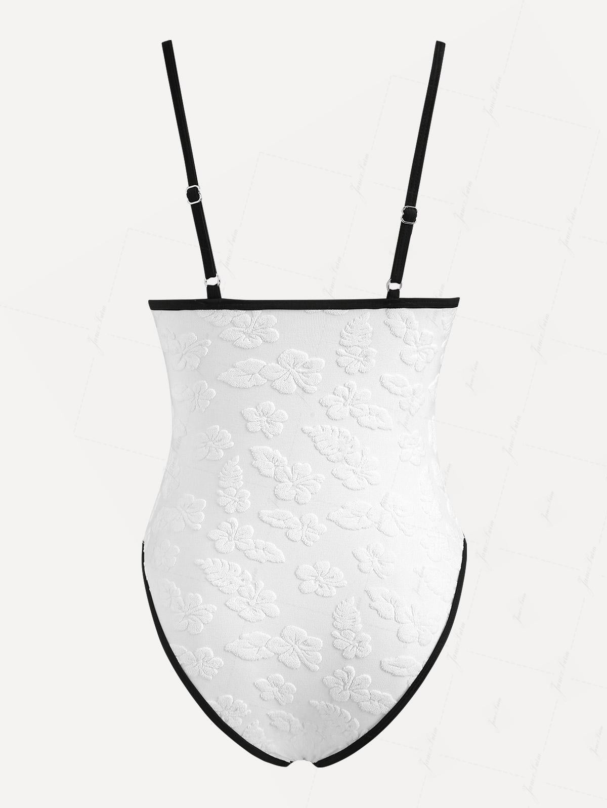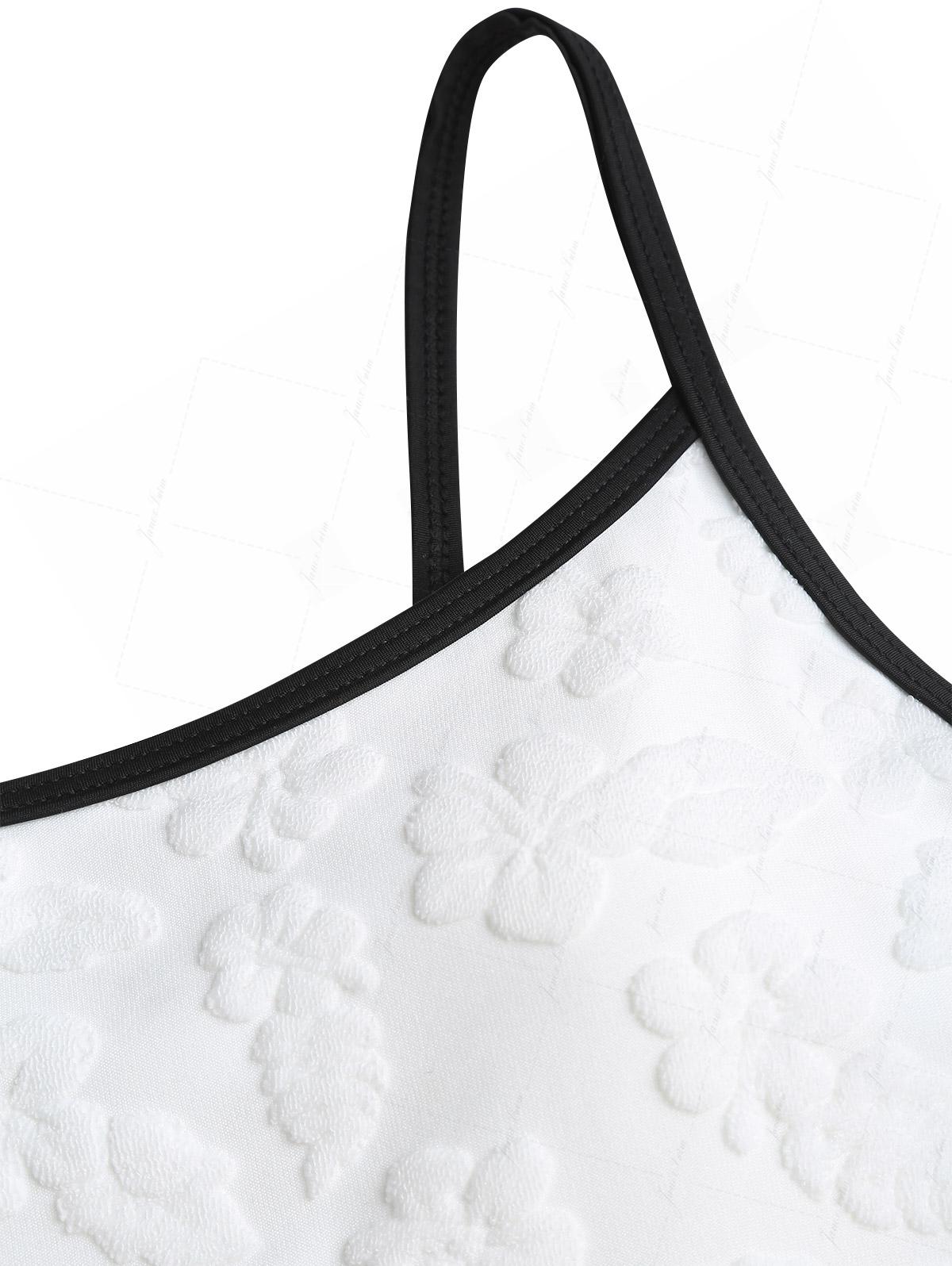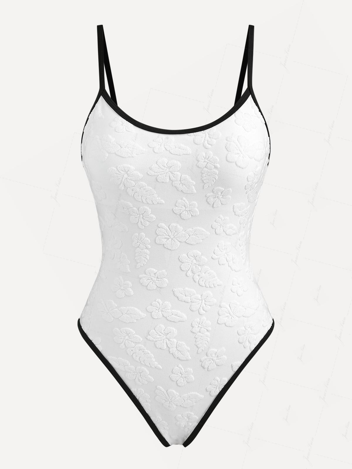 White Terry Cloth Jacquard Contrast Binding One-piece Swimsuit