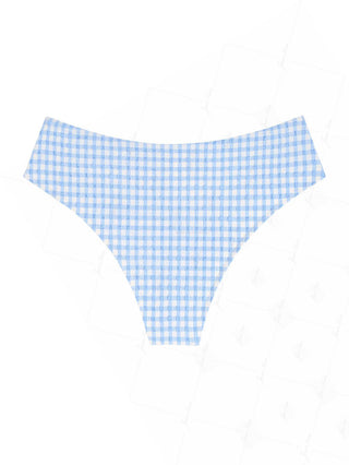 Light Blue Bubble Grid Textured Contrast Foldover Bikini Bottom Cheeky Swim Boyshorts