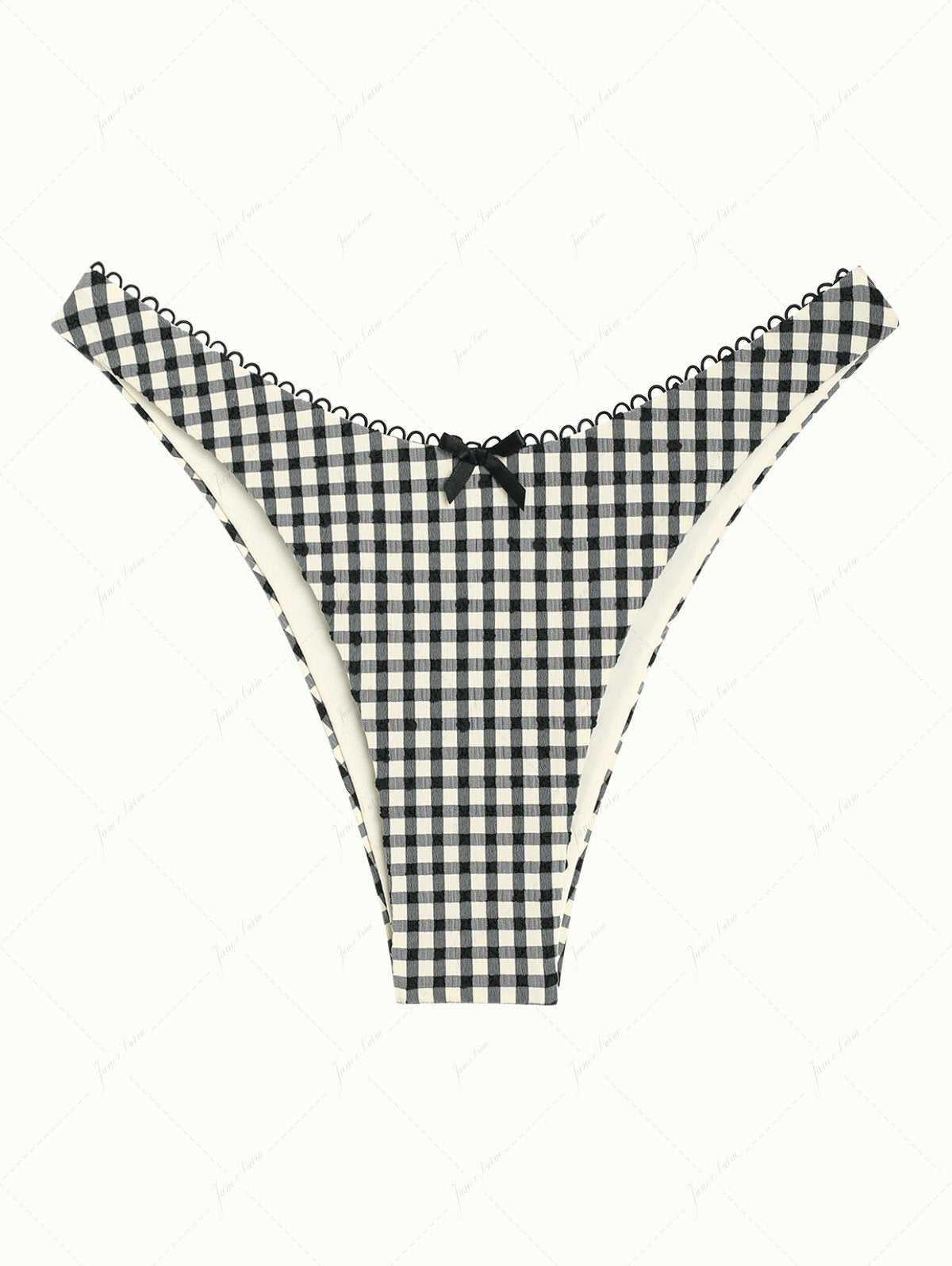Black Plaid Picot Bowknot Cheeky Bikini Bottom