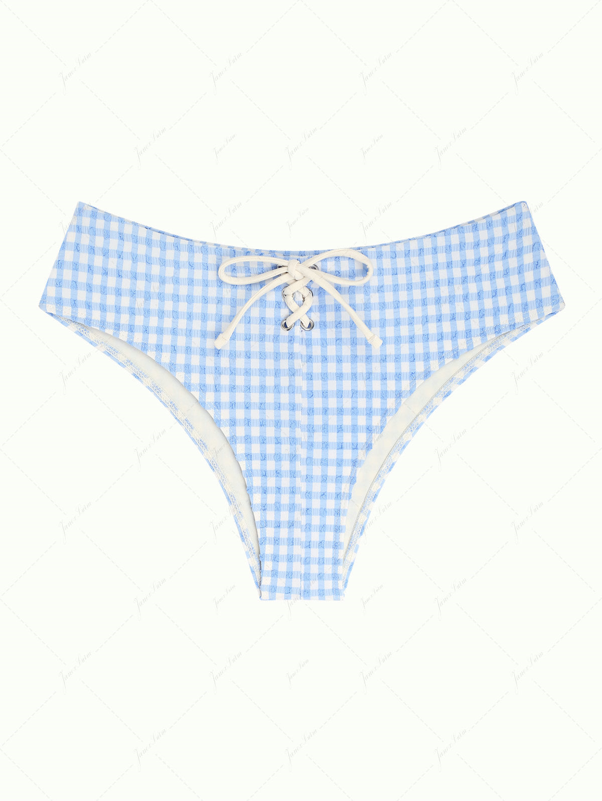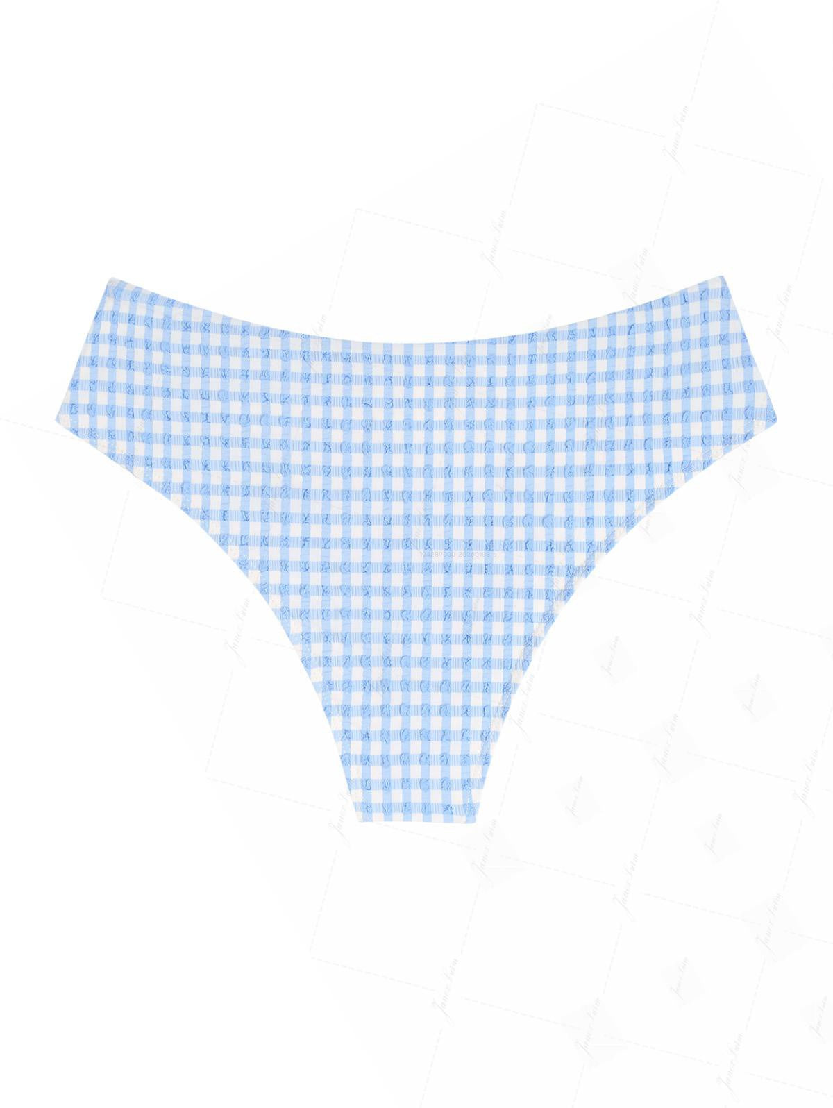 Light Blue Gingham Grommet Lace Up Bikini Bottom