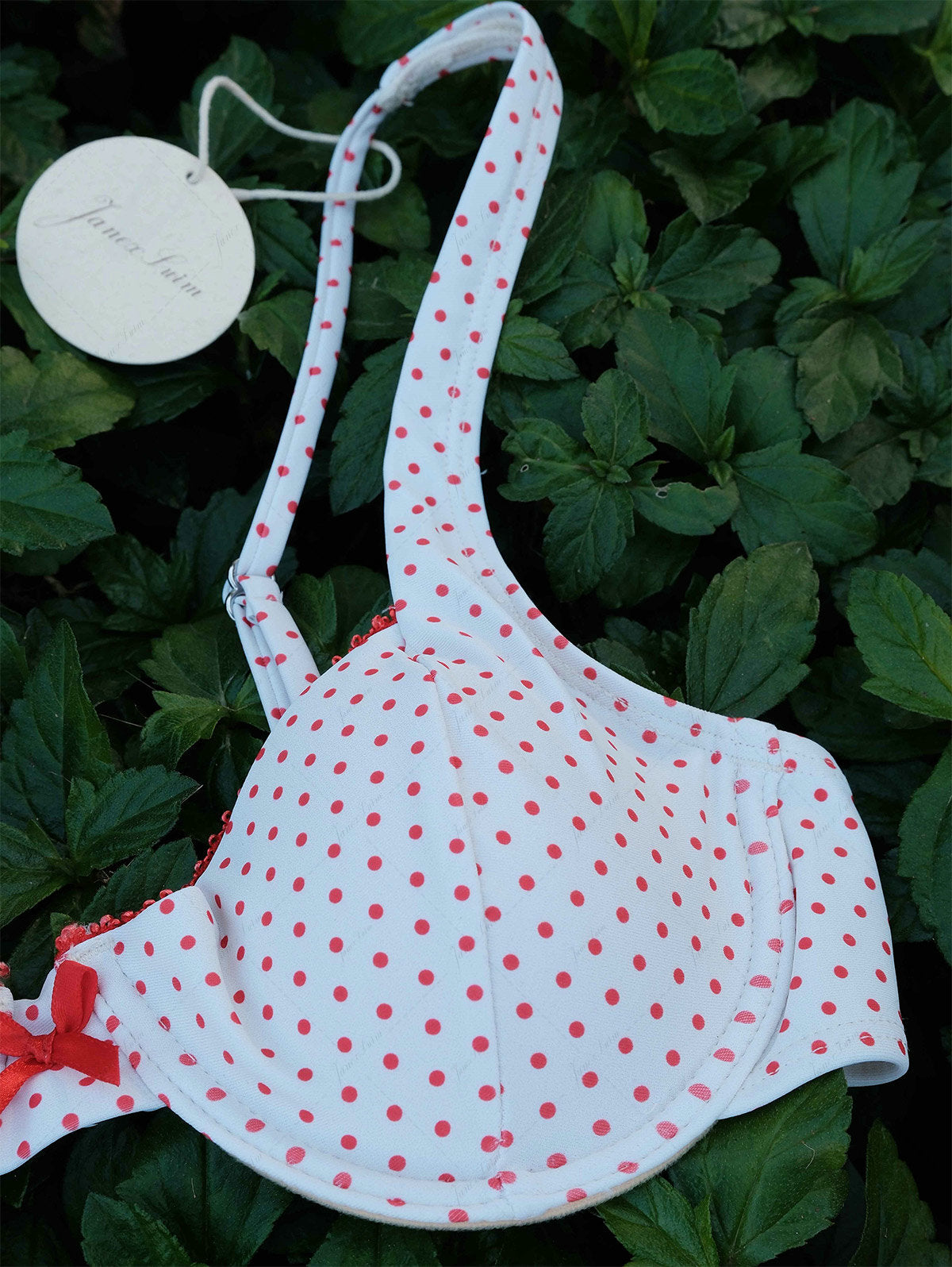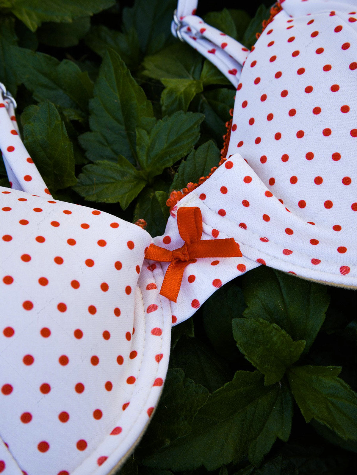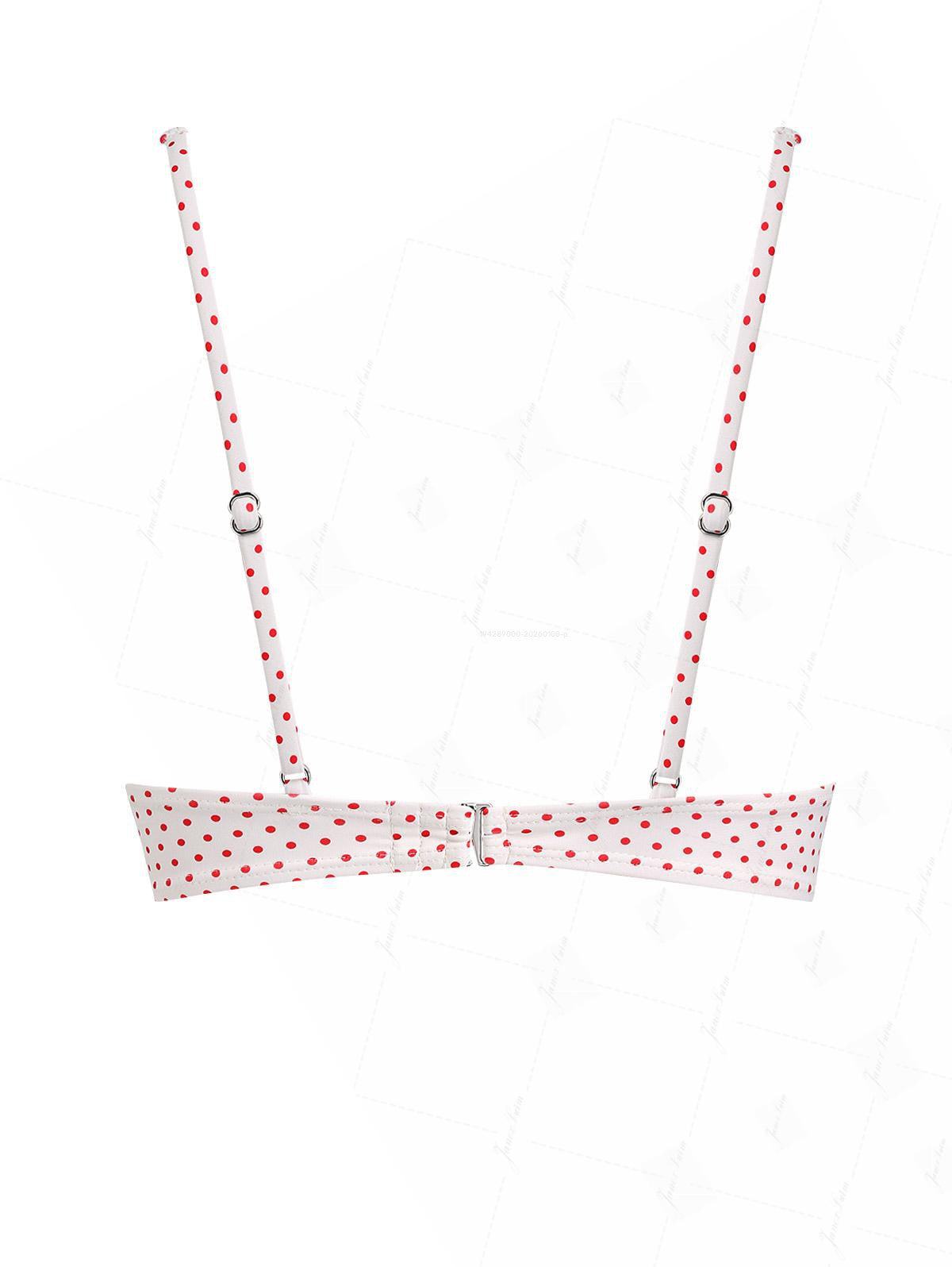 Crystal Cream Polka Dot Lace Bowknot Underwire Bikini Top