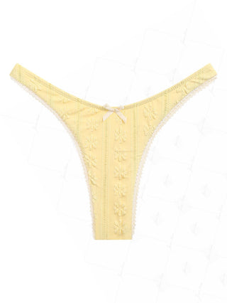 Deep Blue Denim Fabric Contrast Lace Thong Bikini Bottom