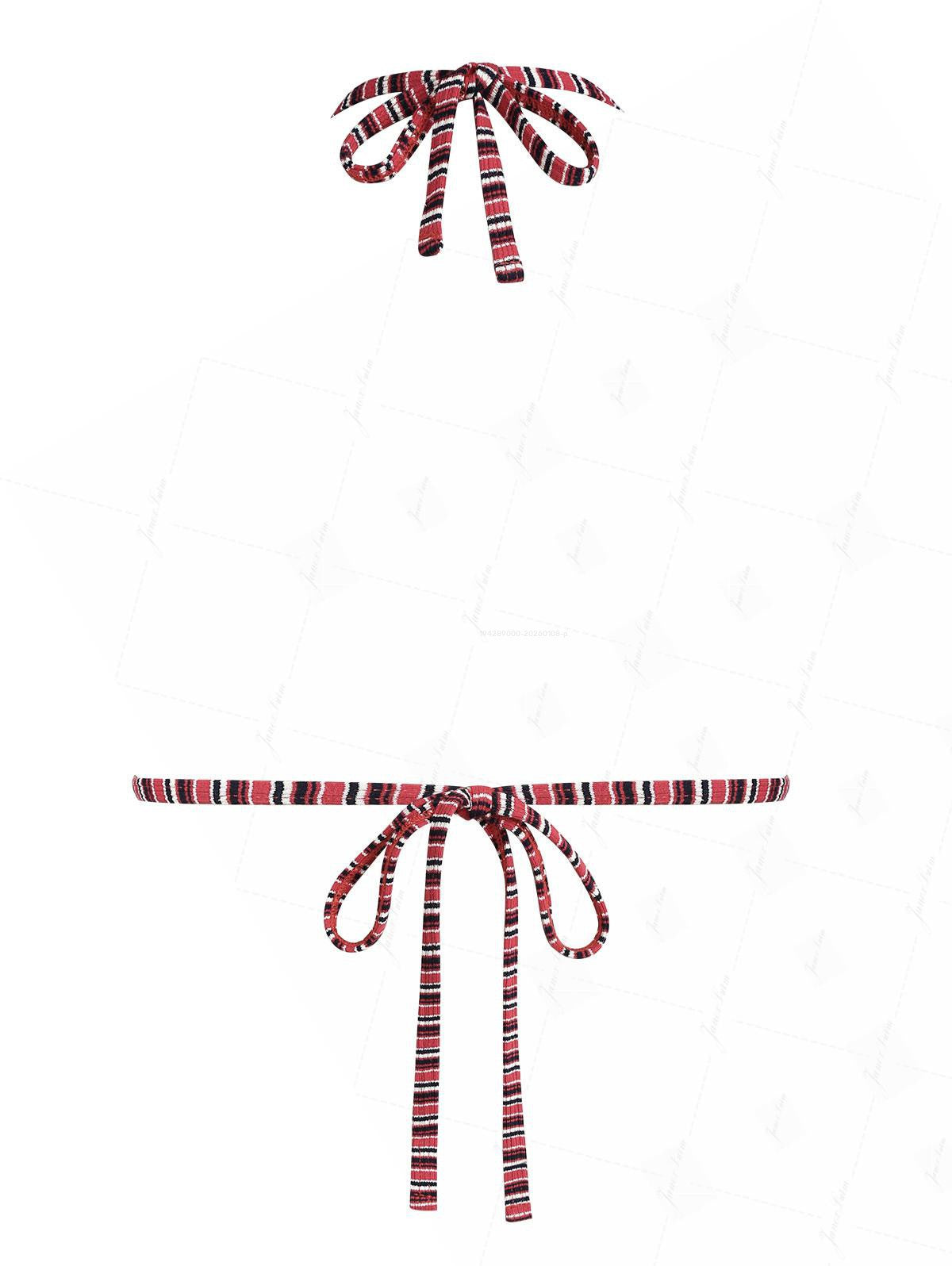 Red Knit Striped Ribbed Halter Triangle Bikini Top