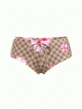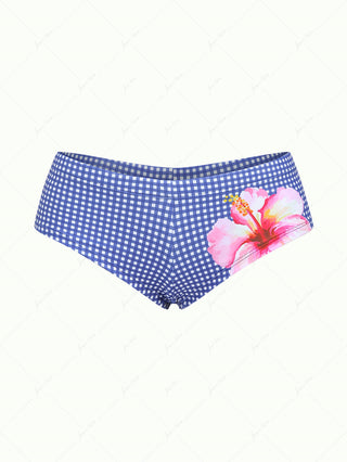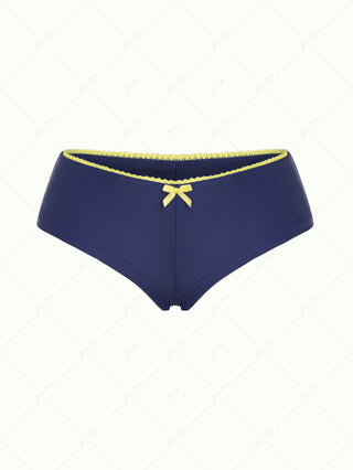 Deep Blue Denim Bowknot Low Rise Bikini Bottom Cheeky Swim Boyshorts