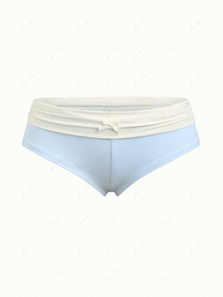 Light Blue Ribbed Knit Ruched Bowknot Foldover Bikini Bottom Cheeky Swim Boyshorts