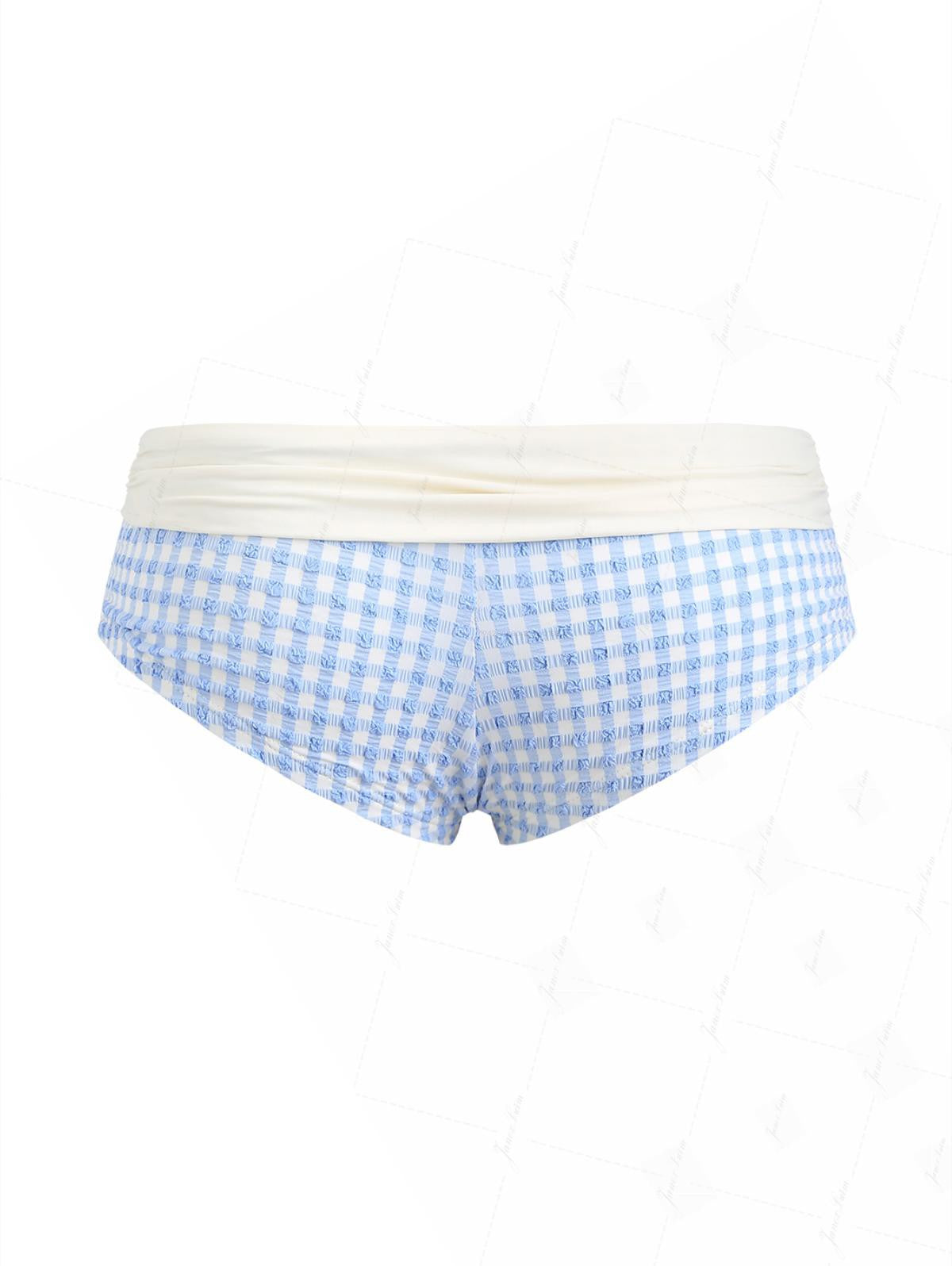 Light Blue Bubble Grid Textured Contrast Foldover Bikini Bottom Cheeky Swim Boyshorts
