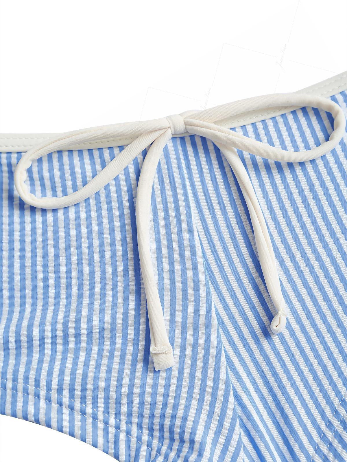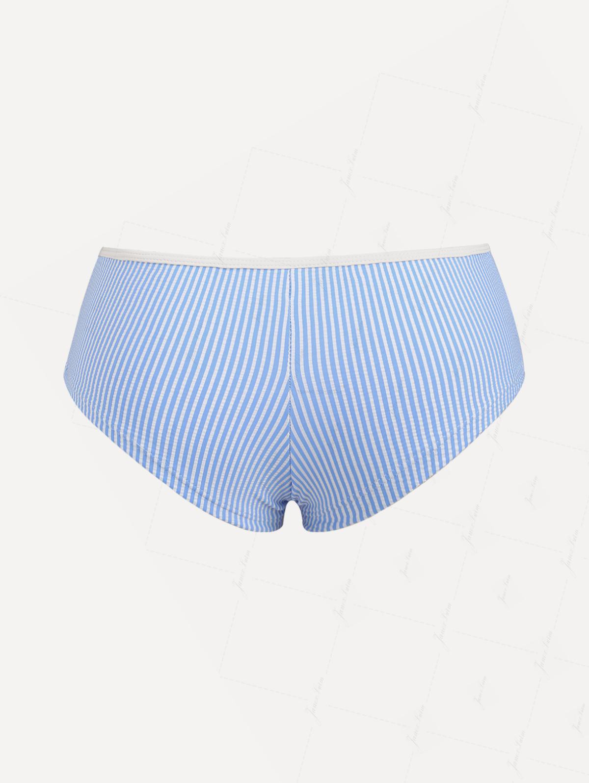 Light Blue Striped Low Rise Beach Swim Bottom Bikini Boyshorts