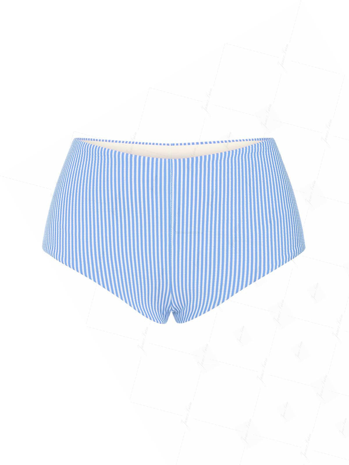 Sky Blue Striped High Rise Beach Swim Bottom Boyshorts