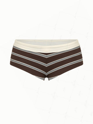 Deep Blue Vintage Plaid Low Rise Beach Bikini Bottom Cheeky Swim Boyshorts