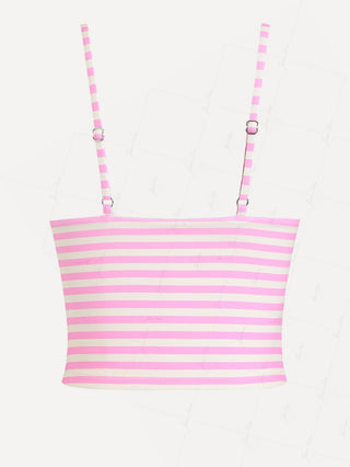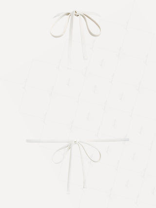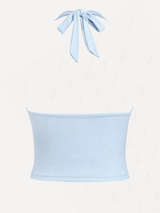Coffee Plaid Floral Print Frilled Ruffles Plunging Neck Halter Tied Tankini Top