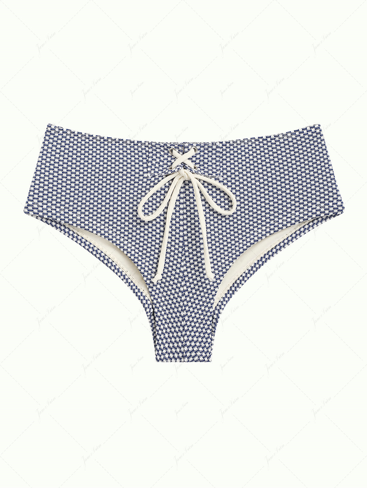 Deep Blue Polka Dot Print Lace Up Bikini Bottom Cheeky Swim Boyshorts