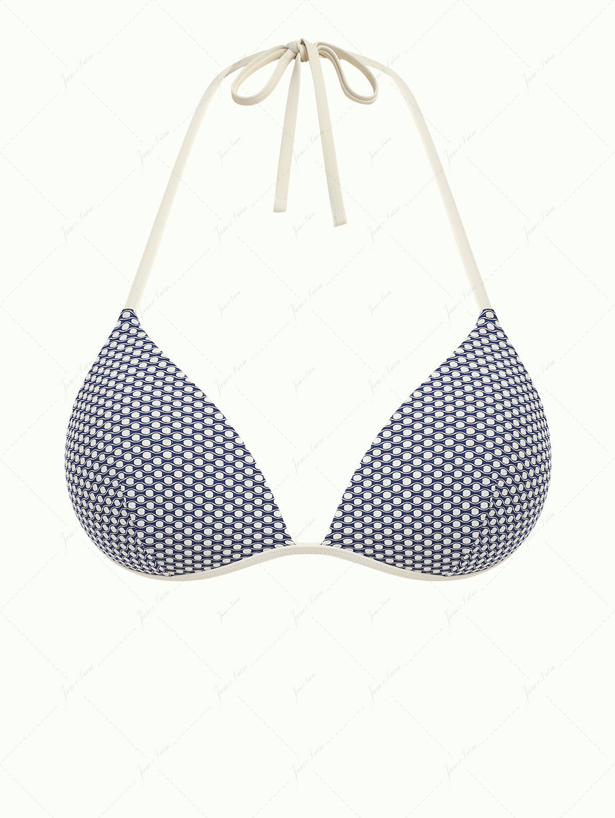 Deep Blue Polka Dot Print Molded Cups Support Triangle Bikini Top