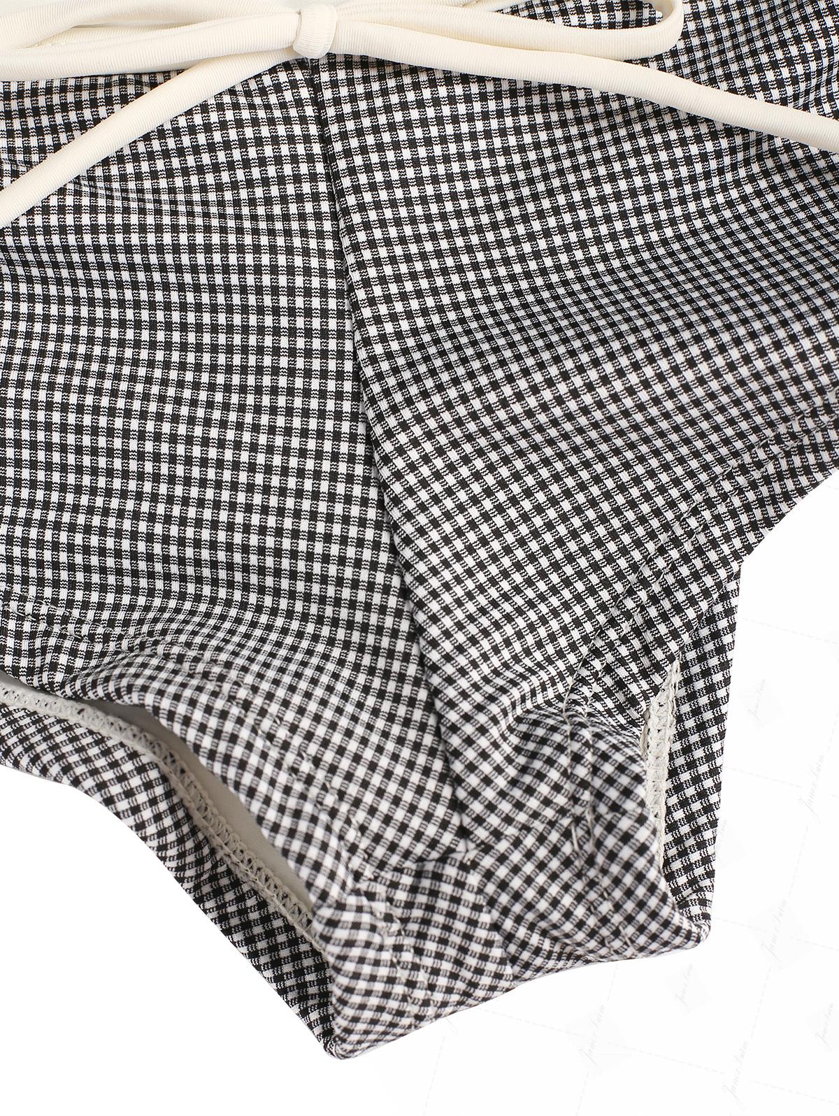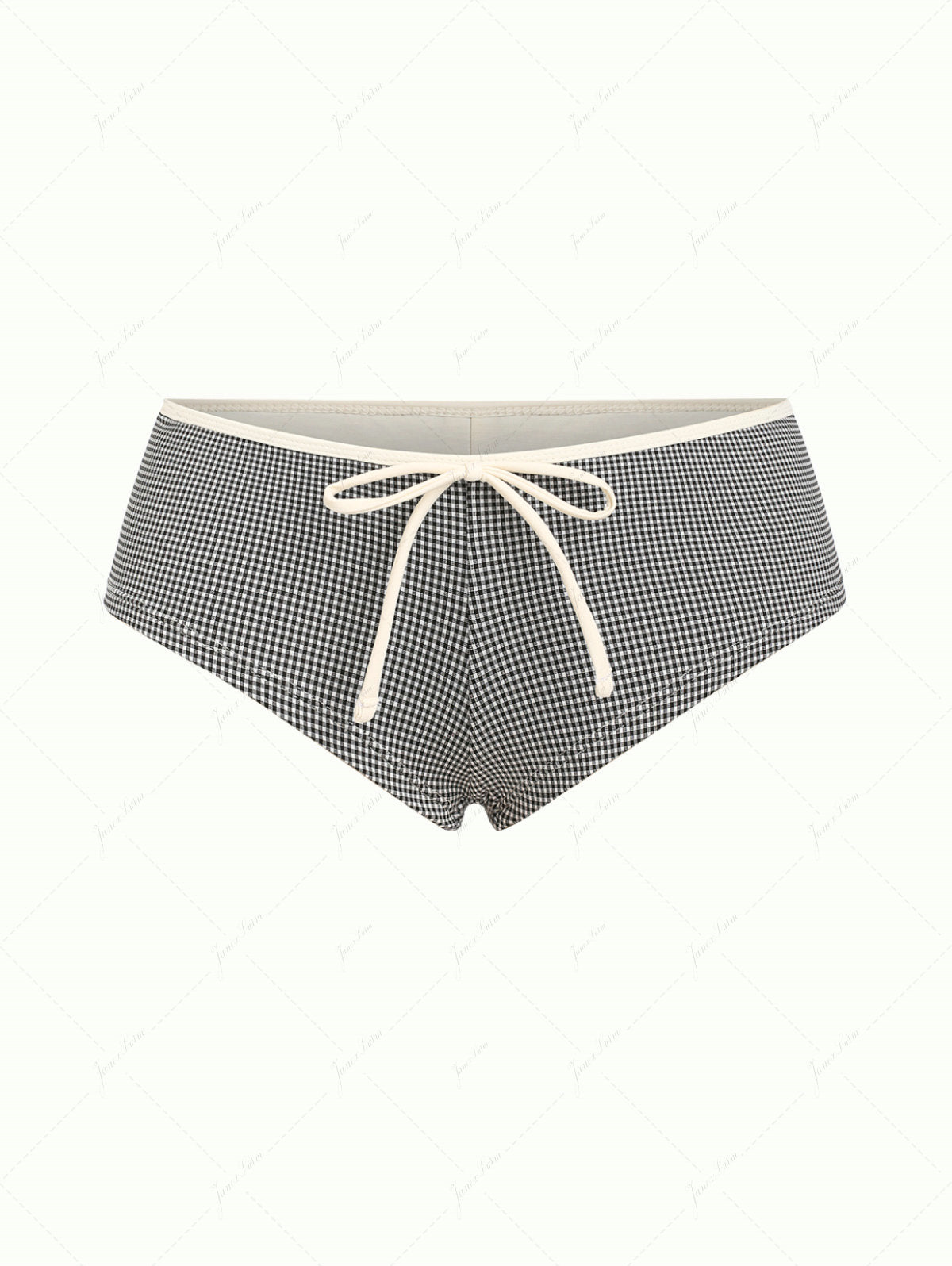 Black Gingham Bowknot Low Rise Bikini Bottom Cheeky Swim Boyshorts