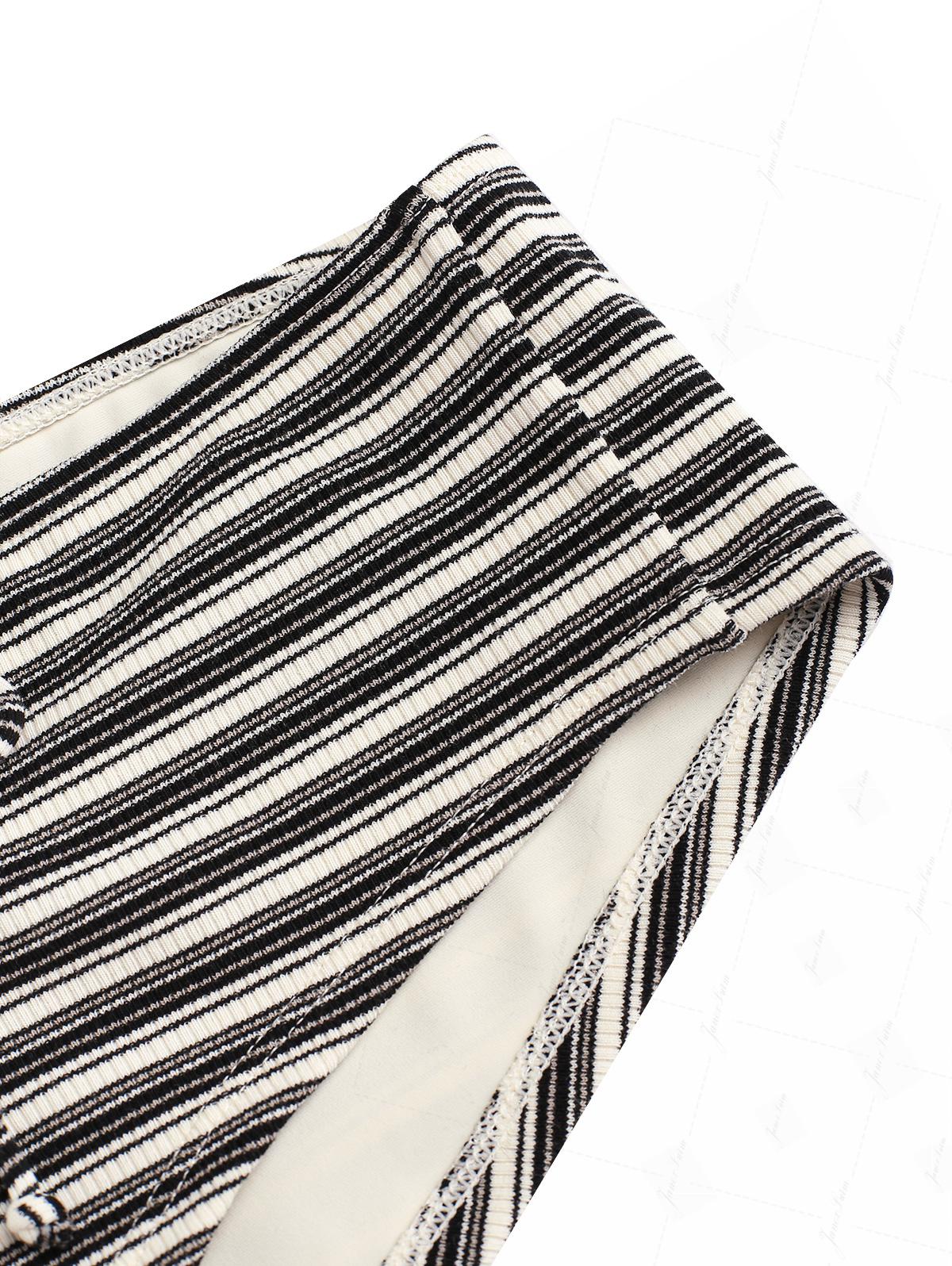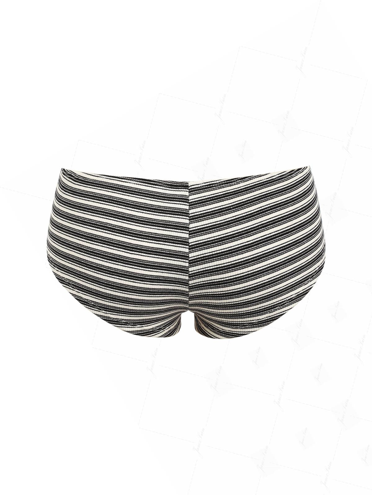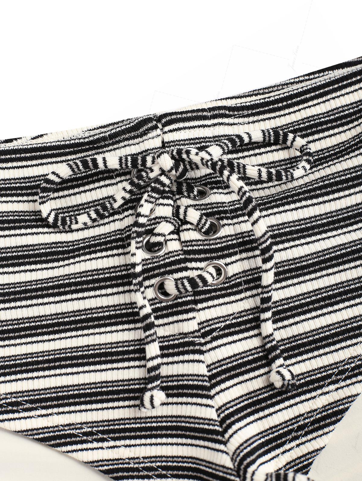 Black Knit Striped Ribbed Grommet Lace Up Bikini Bottom Cheeky Swim Boyshorts