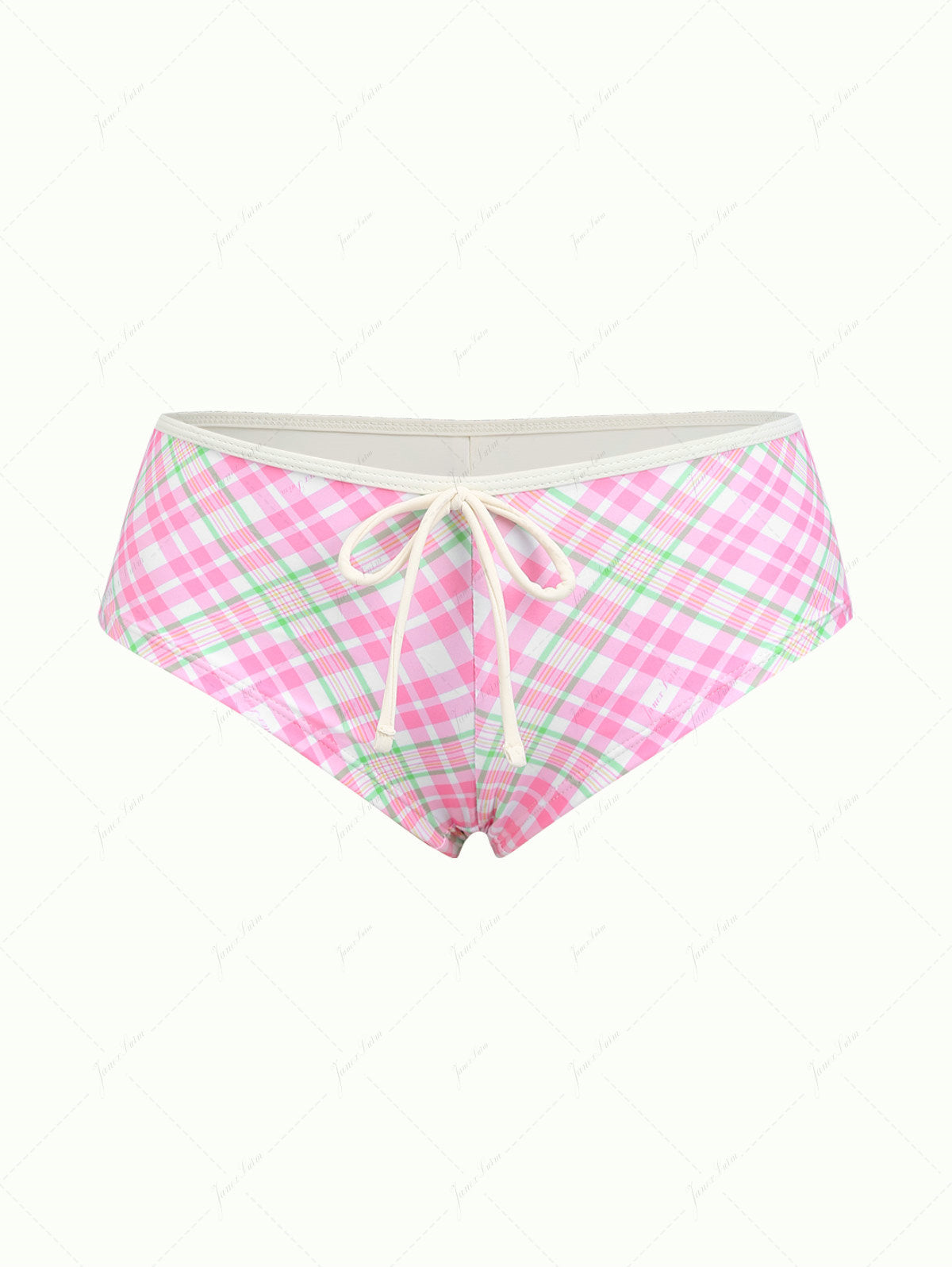 Light Pink Plaid Bowknot Low Rise Bikini Bottom Cheeky Swim Boyshorts