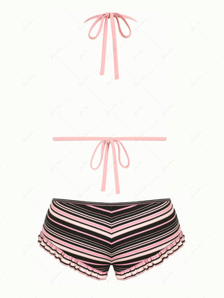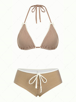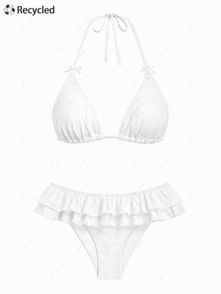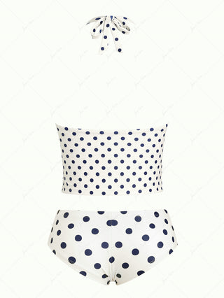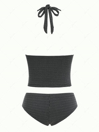 Plant Green Polka Dot Lace Bowknot Halter Triangle Cheeky Boyshorts Bikini Set