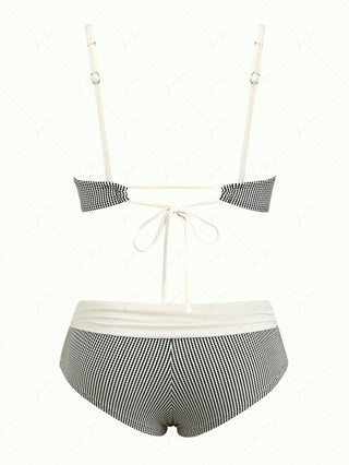 Crystal Cream Metallic Gold Yarn Knitted Fabric Ruched Ruffles Cheeky Boyshorts Bikini Set
