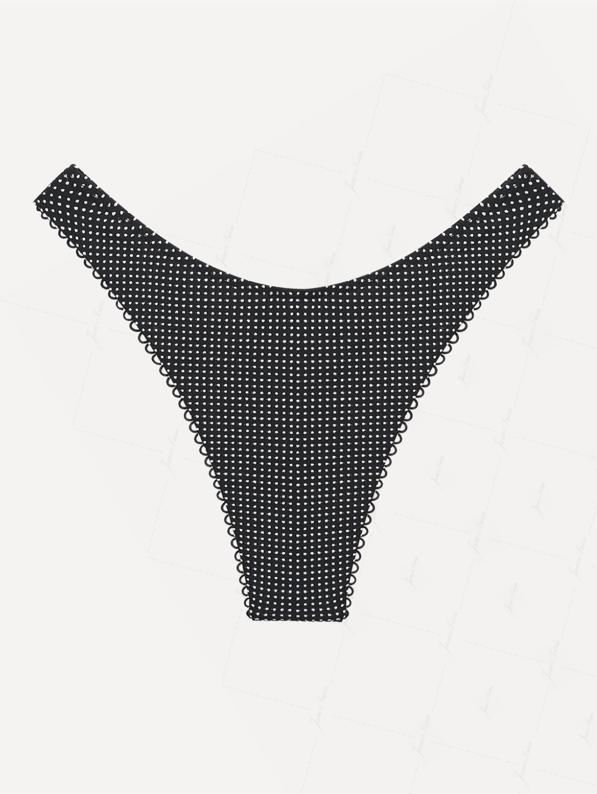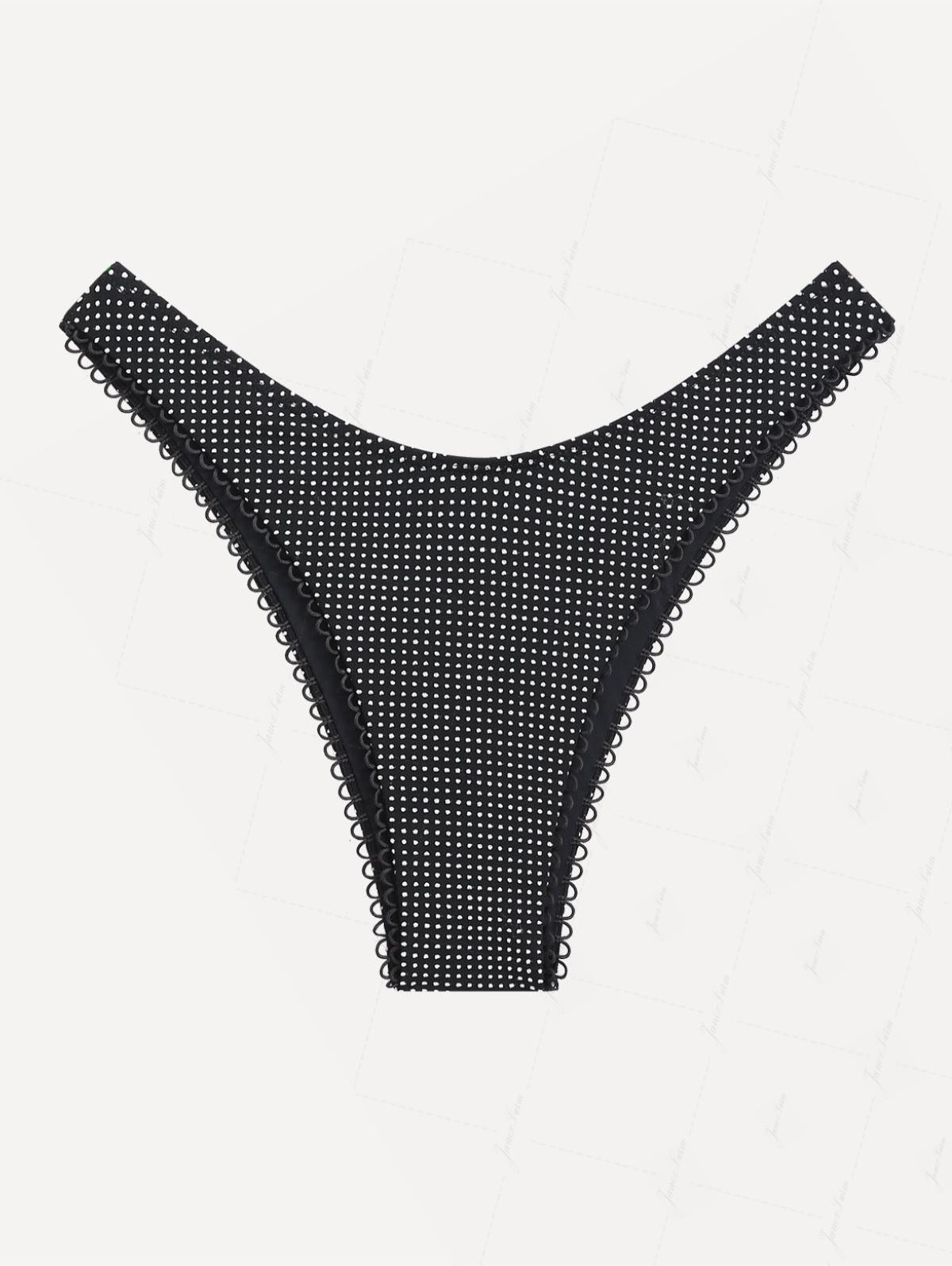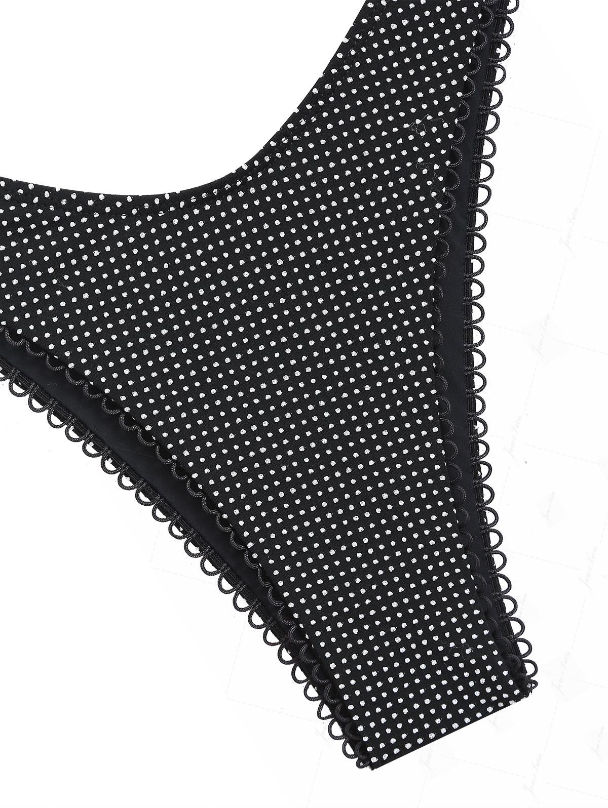 Black Pin Dot Jacquard Picot Trim High Leg Bikini Bottom