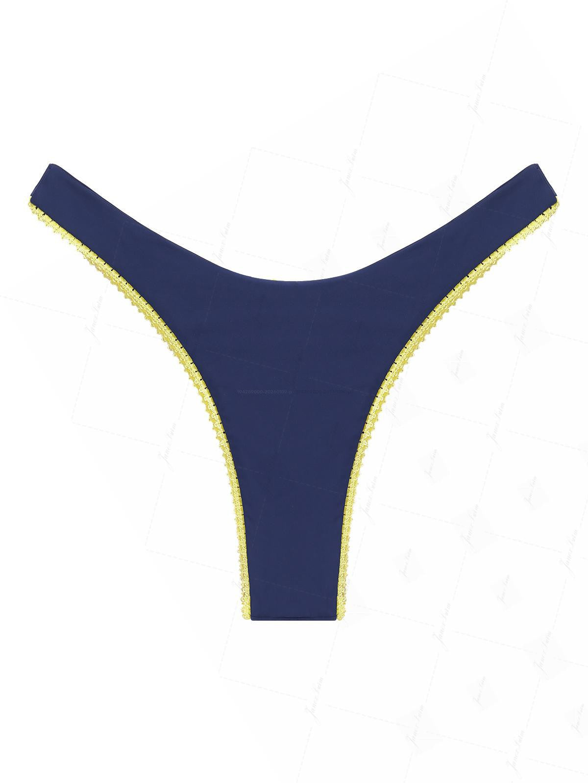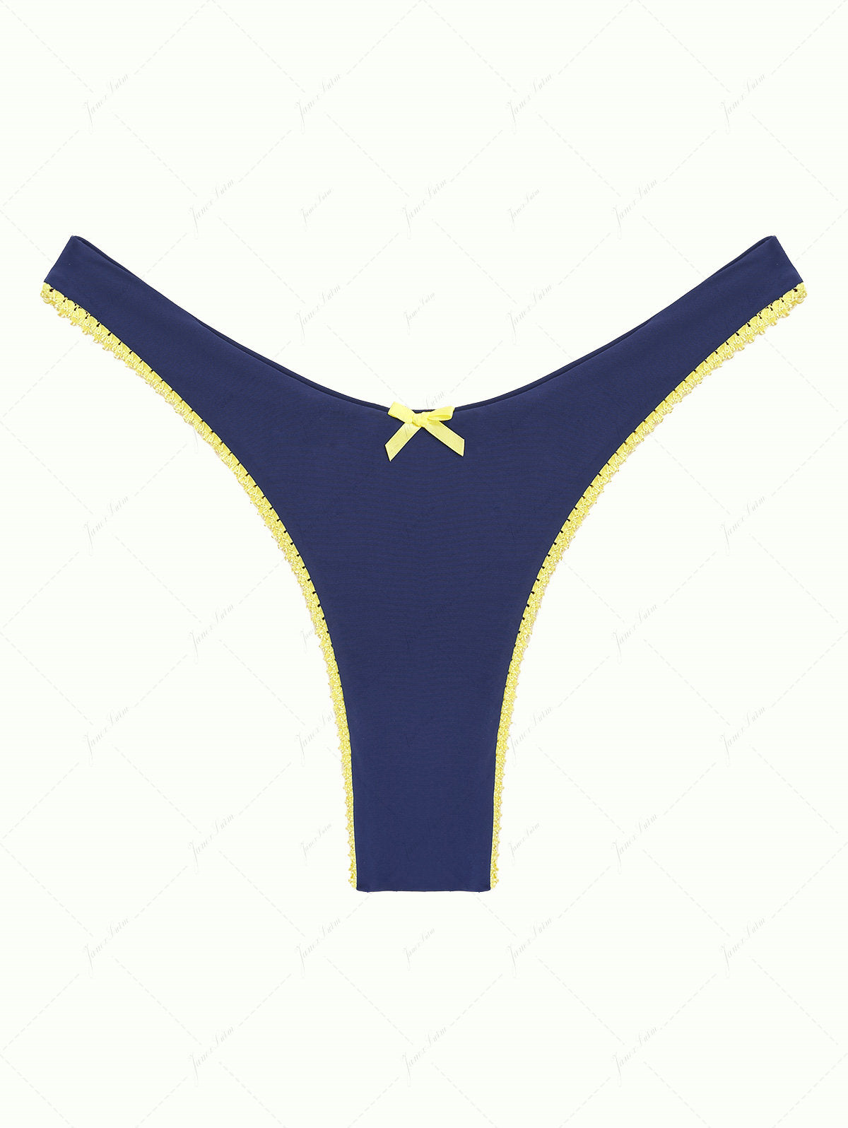Deep Blue Contrast Lace Bowknot Cheeky Bikini Bottom