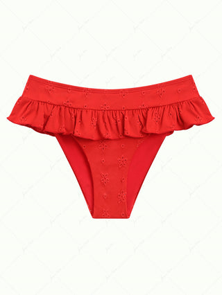 Red Recycled Fabric Jacquard Low Rise Bikini Bottom Cheeky Swim Boyshorts