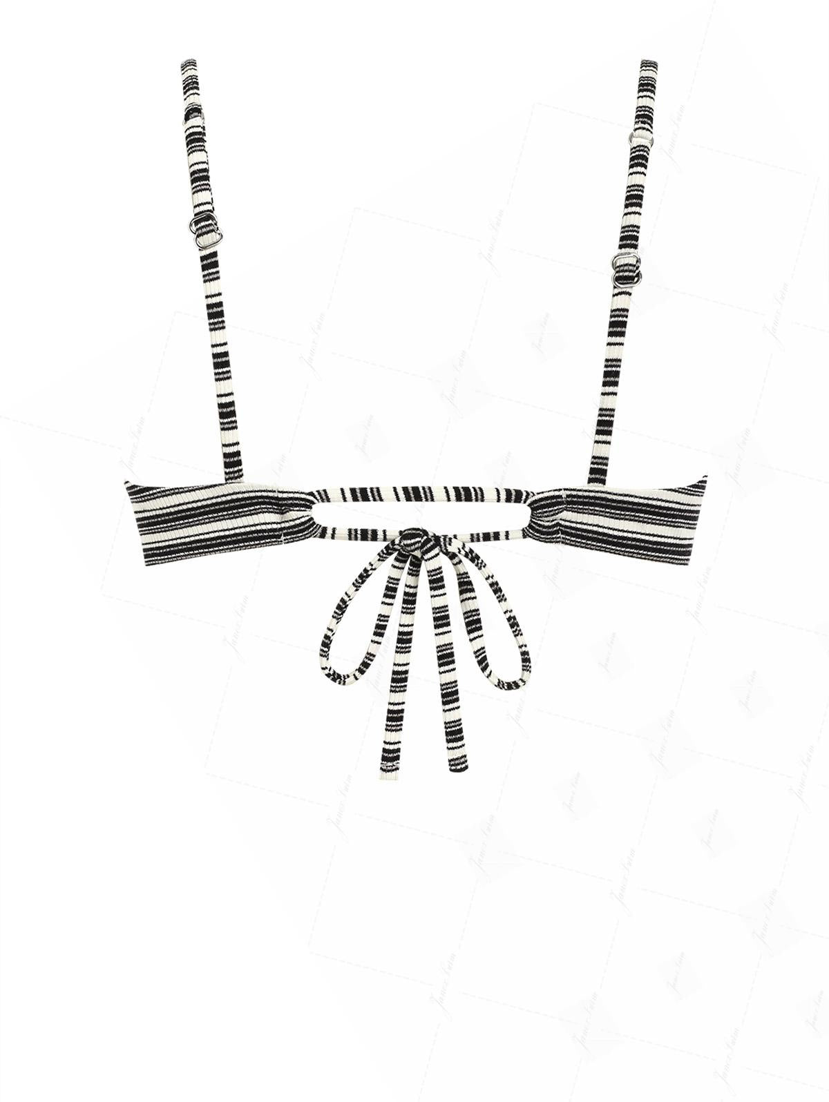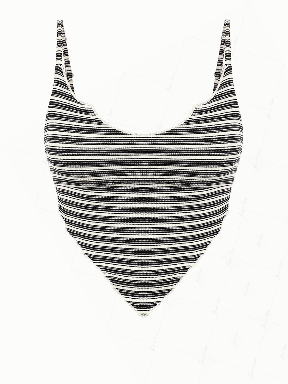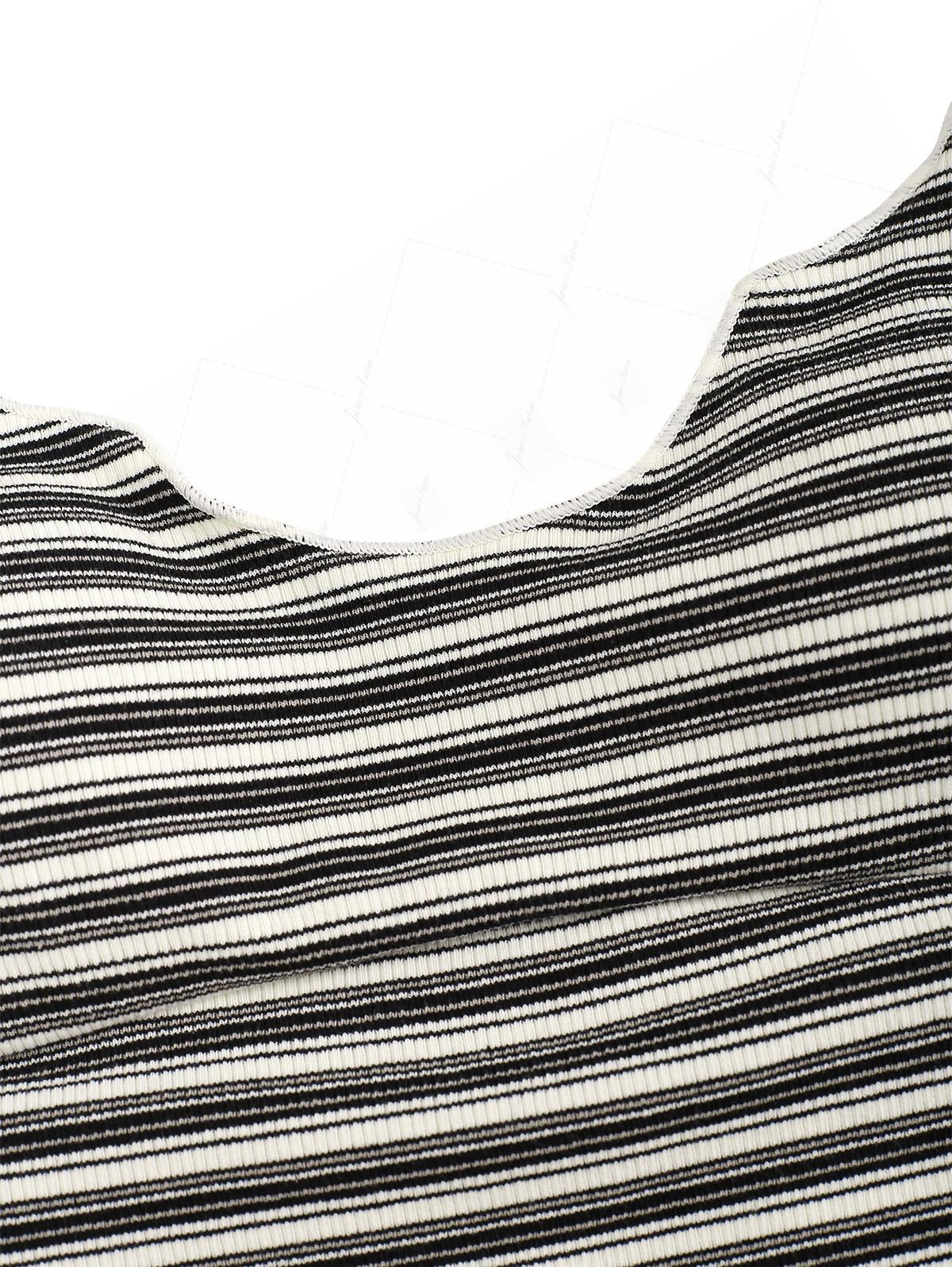 Black Knit Striped Ribbed Hanky Hem Cinched Tied Back Tankini Top