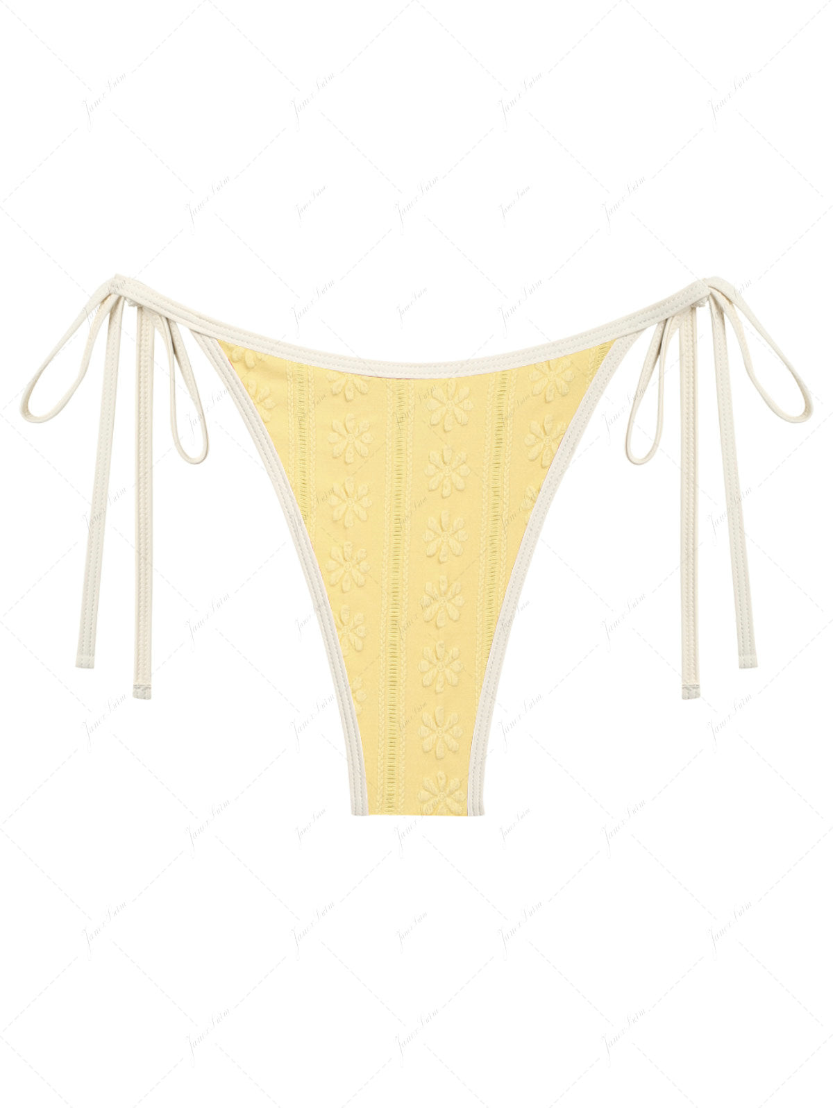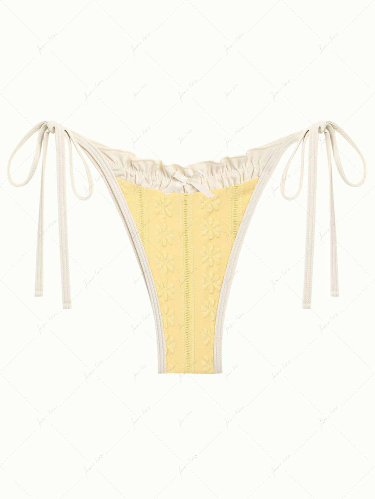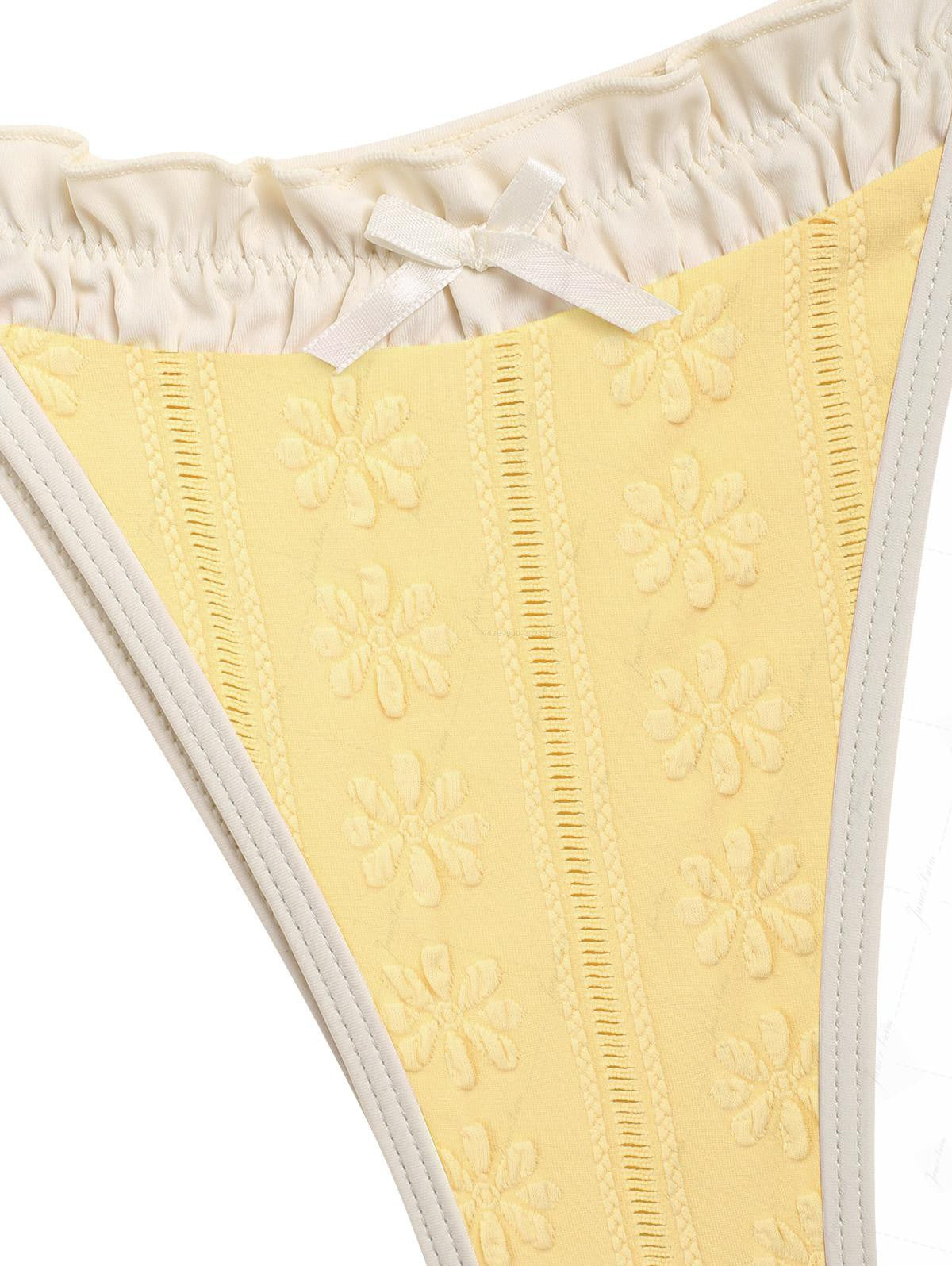 Yellow Floral Jacquard Textured Bowknot Tie Side Cheeky Bikini Bottom