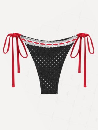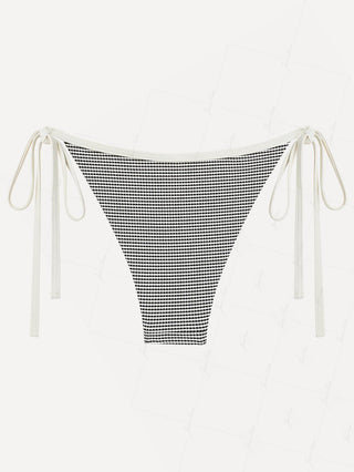 Light Pink Knitted Plaid Contrast Lace Bowknot Tie Side Brazilian Bikini Bottom