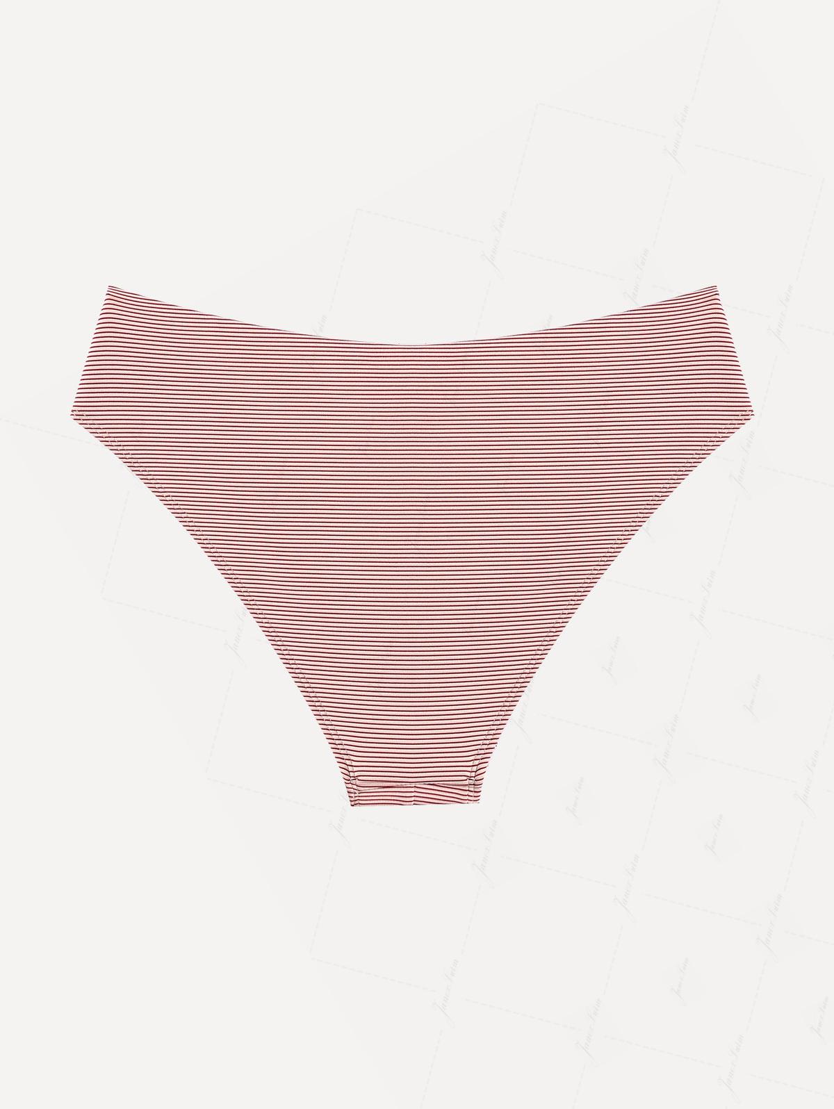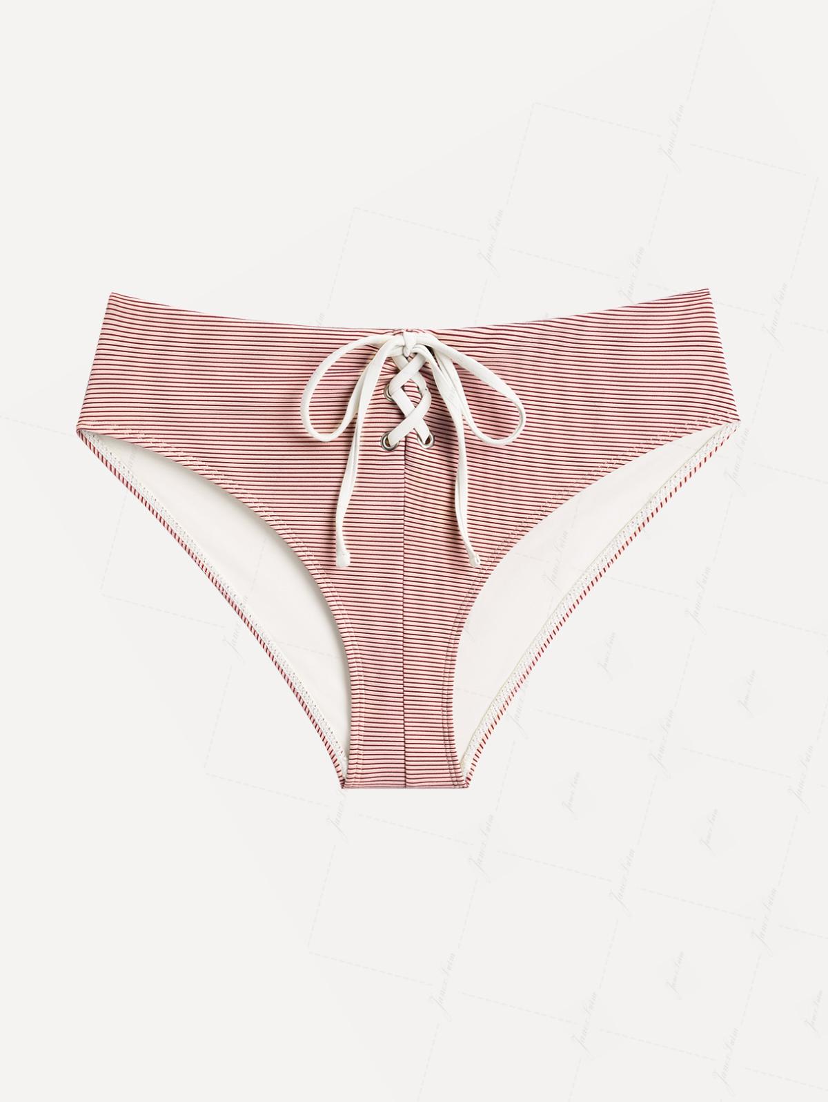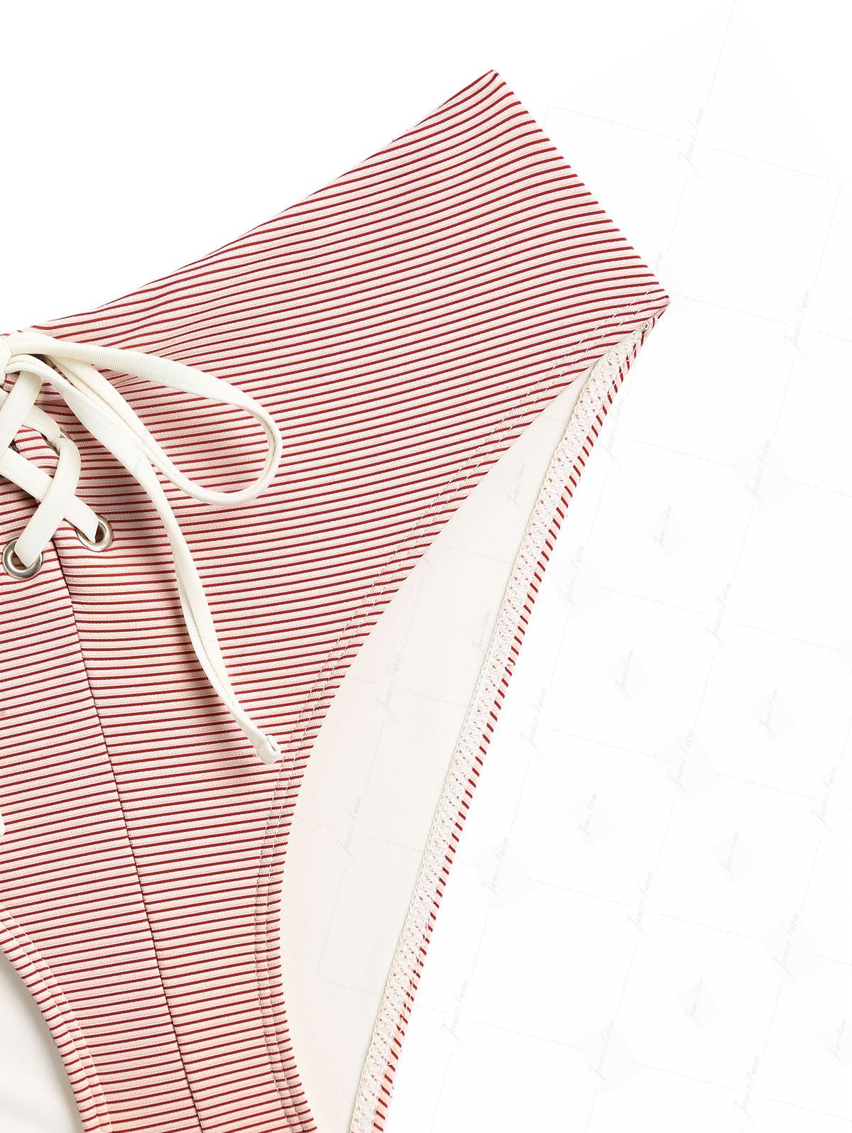 Cherry Red Striped Grommet Lace Up Full Coverage Bikini Bottom