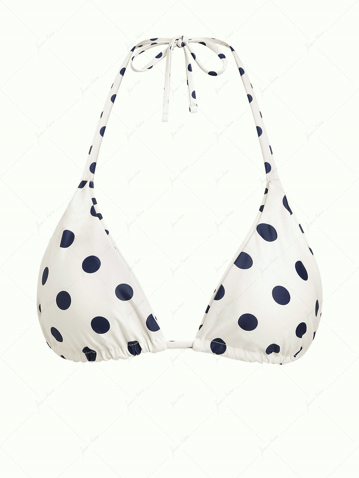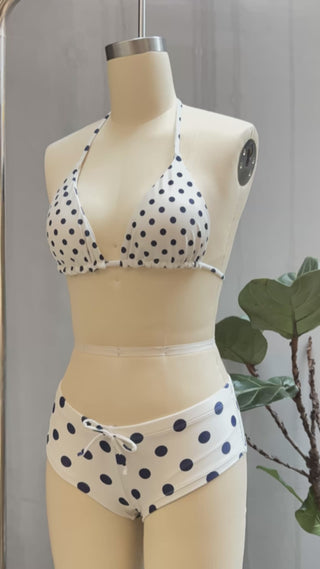 Crystal Cream Vintage Polka Dot Reversible Halter Triangle Bikini Top