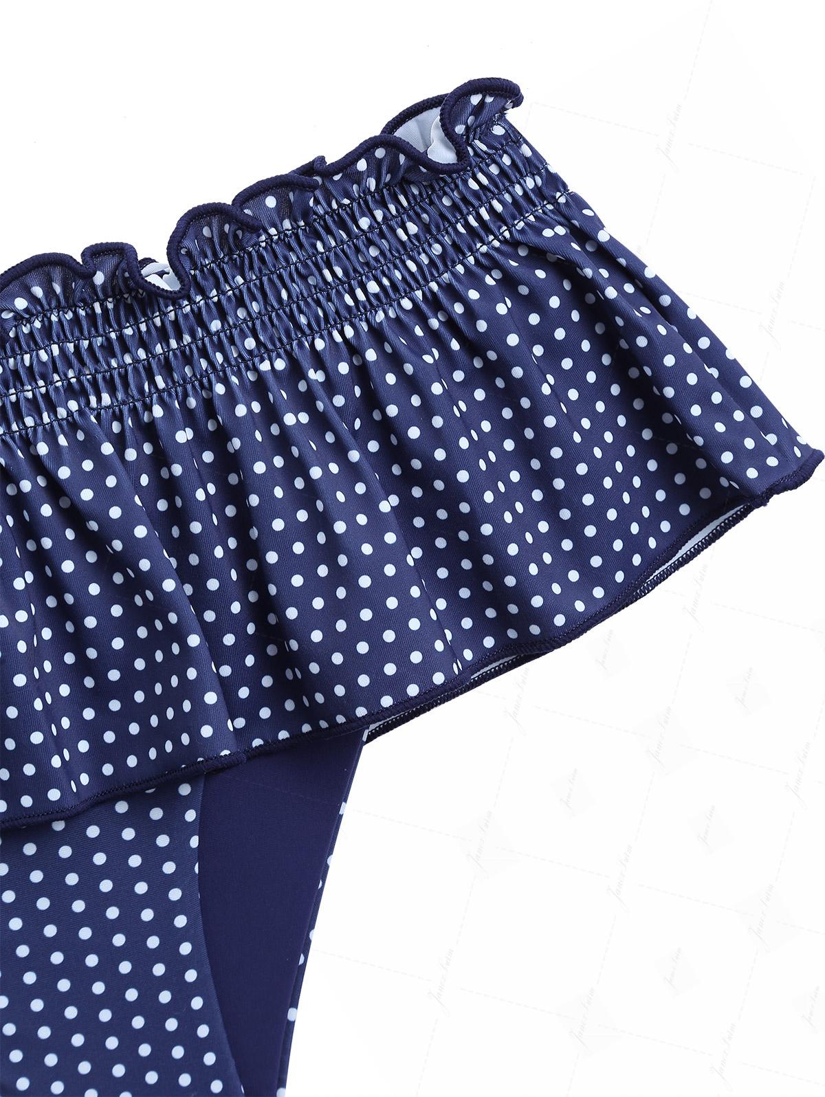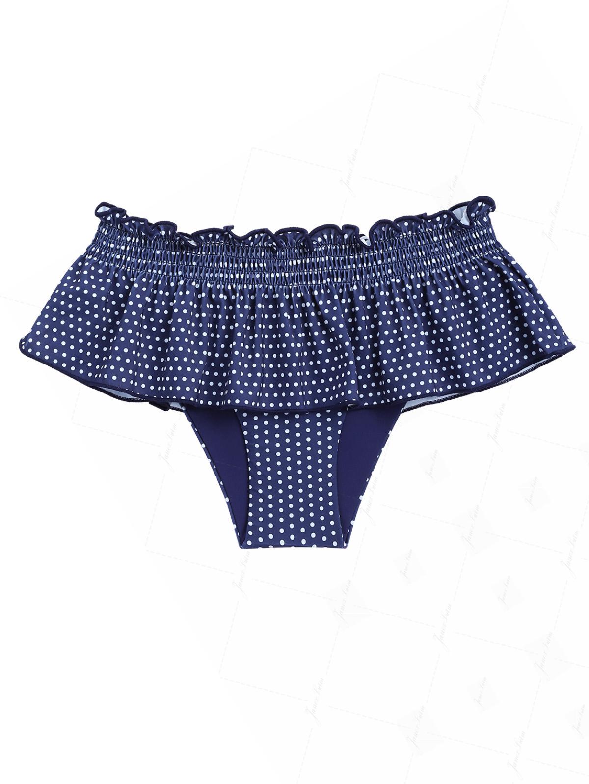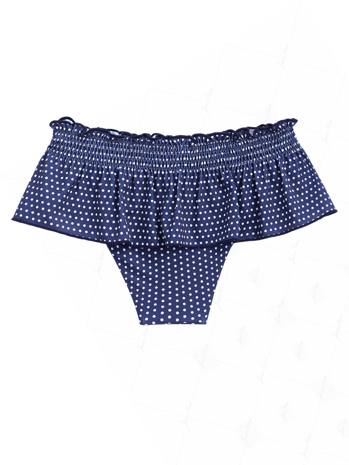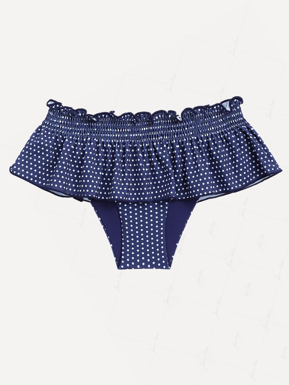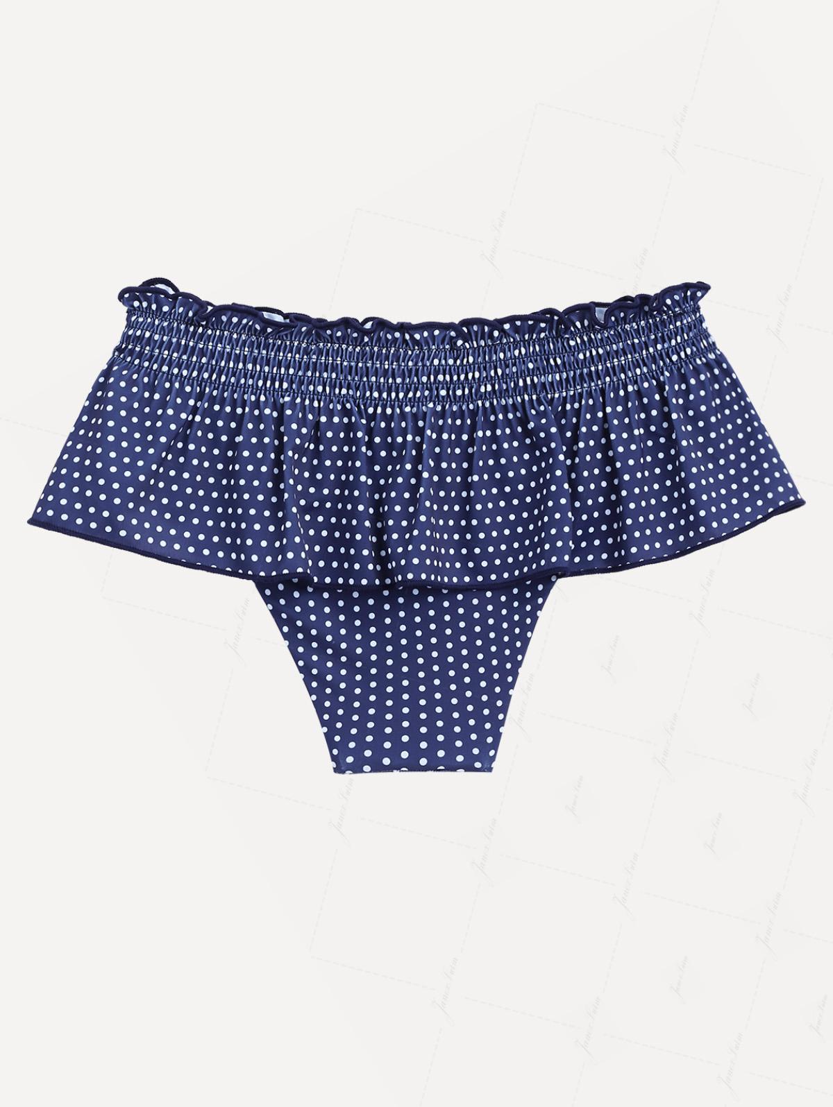 Deep Blue Polka Dot Smocked Ruffles Peplum Skirted Bikini Bottom
