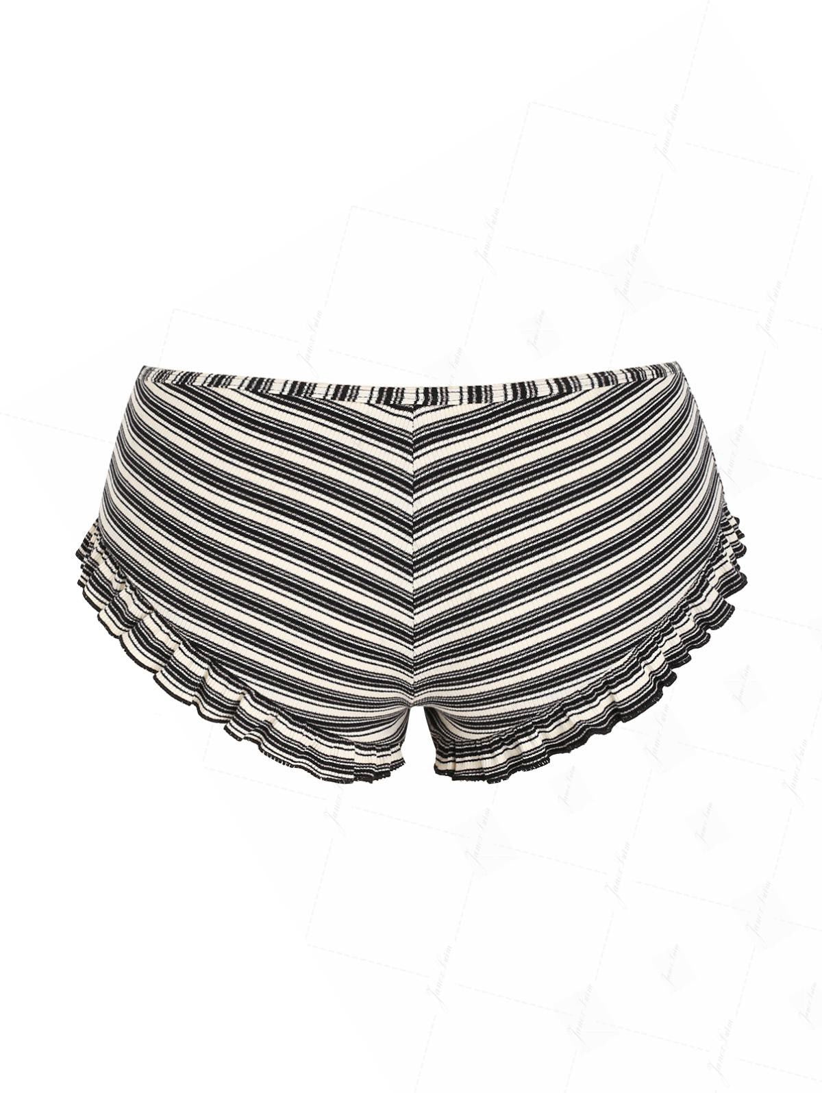 Black Knit Striped Ribbed Peplum Bikini Bottom Cheeky Swim Boyshorts