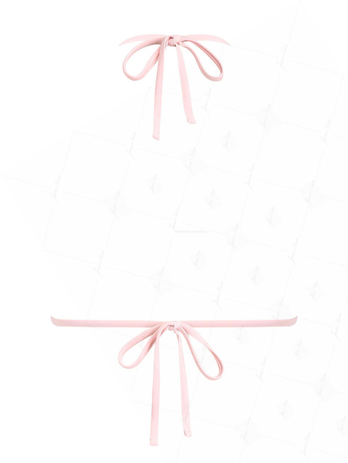 Vintage Black Polka Dot Lace Bowknot Halter Triangle Bikini Top