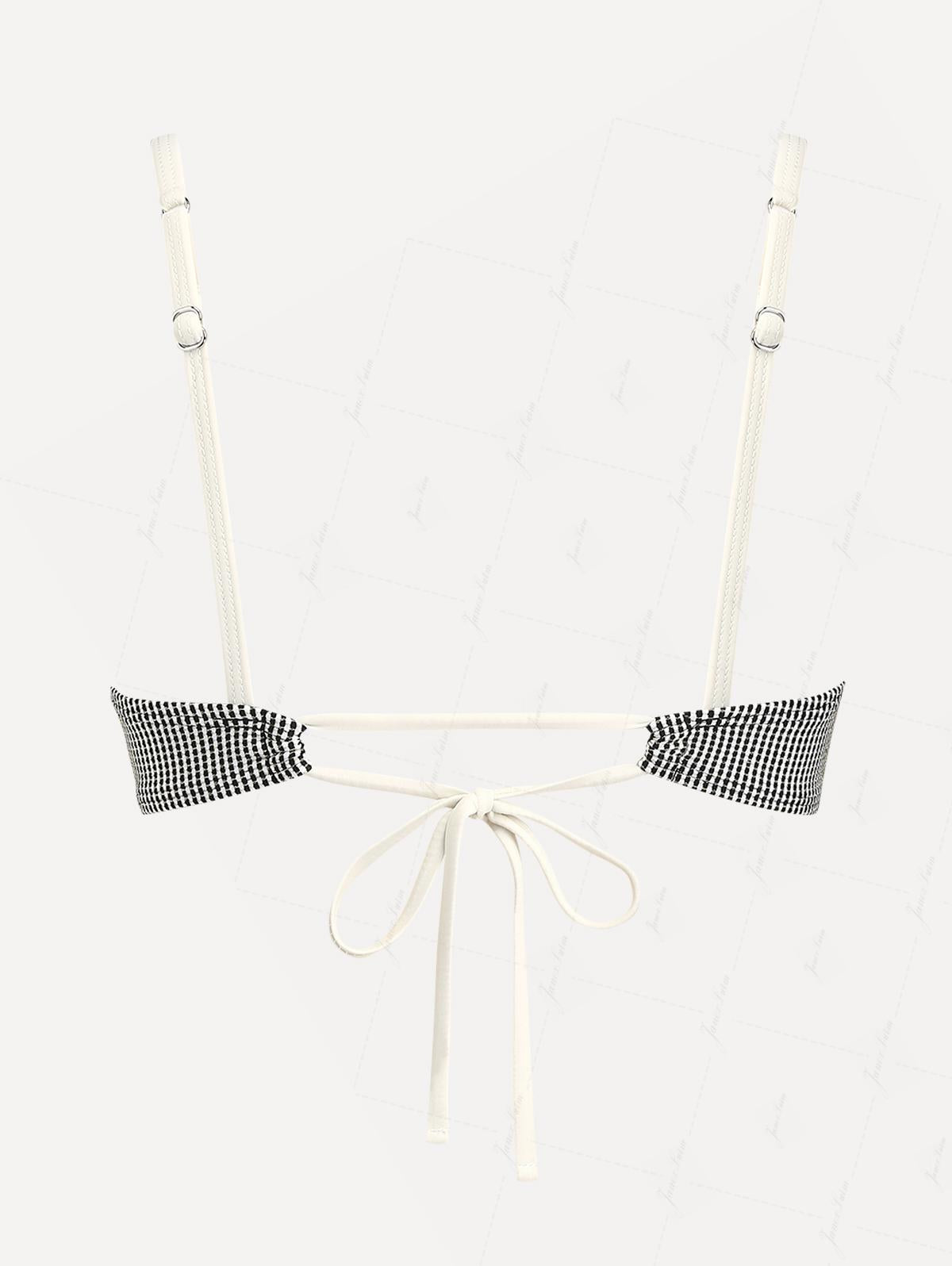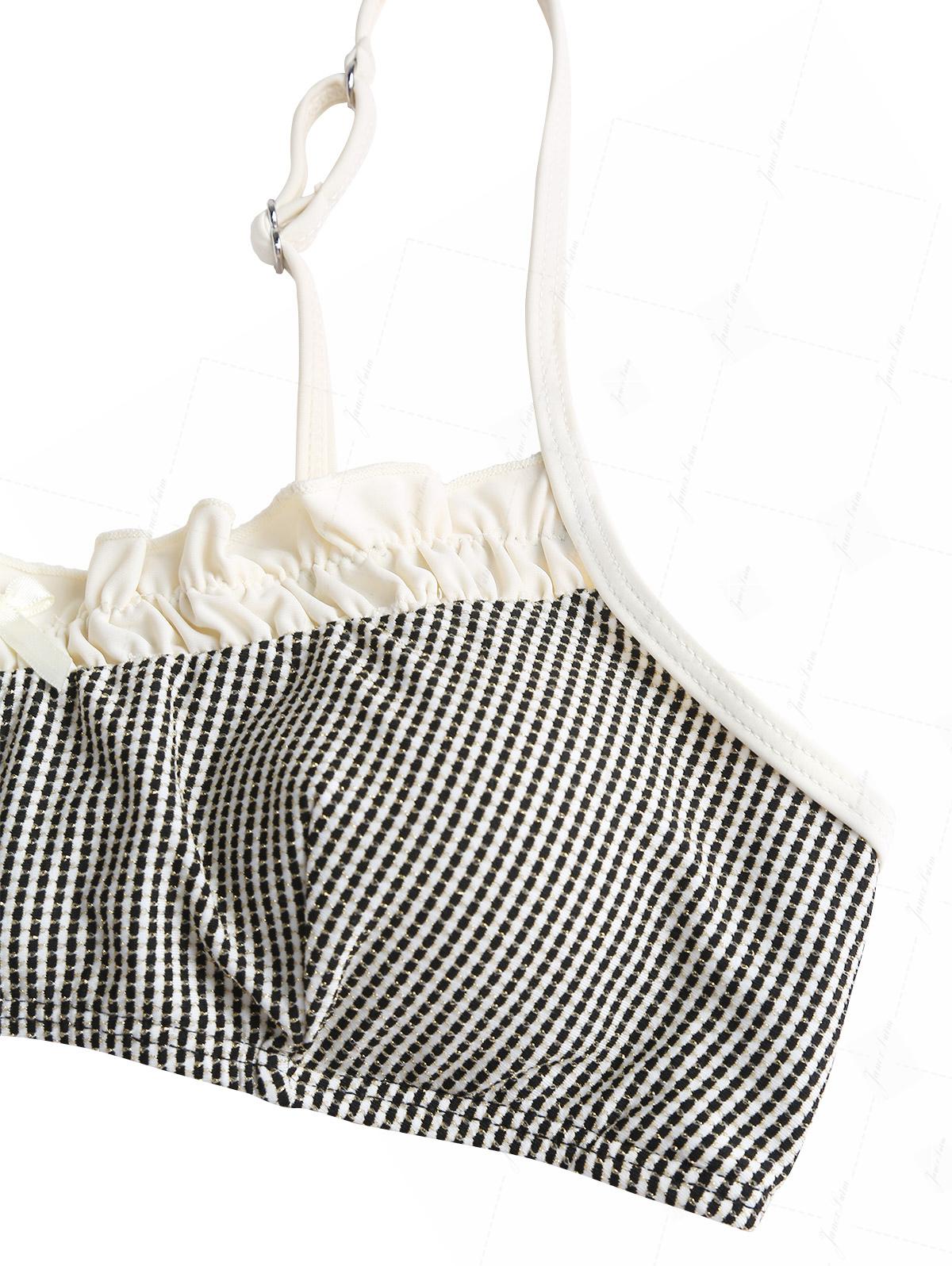 Crystal Cream Metallic Gold Yarn Knitted Fabric Ruched Ruffles Bikini Top