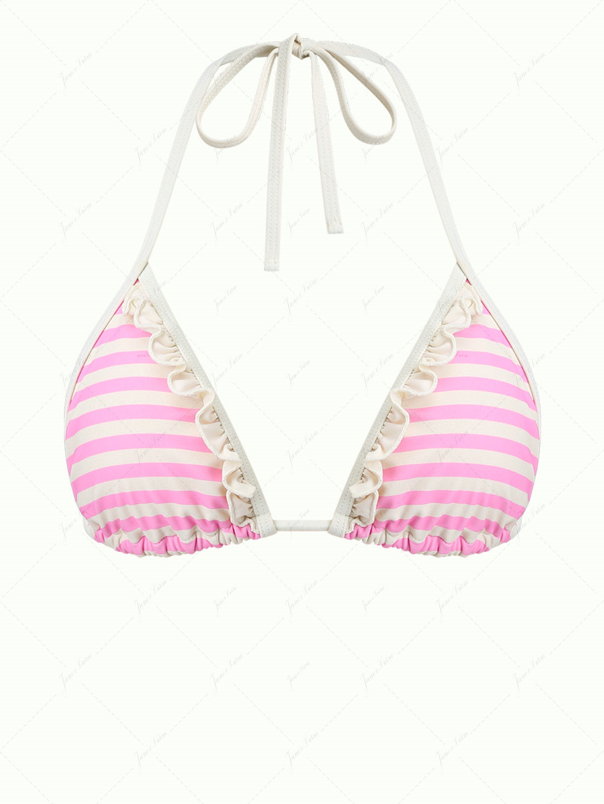 Light Pink Striped Ruffles Halter Triangle Bikini Top
